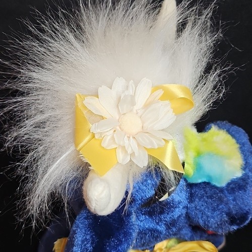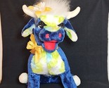 - Vintage Rushton Plush Cow Blue Tie Dye Wire Legs Carnival Cowbell Clown Glitter