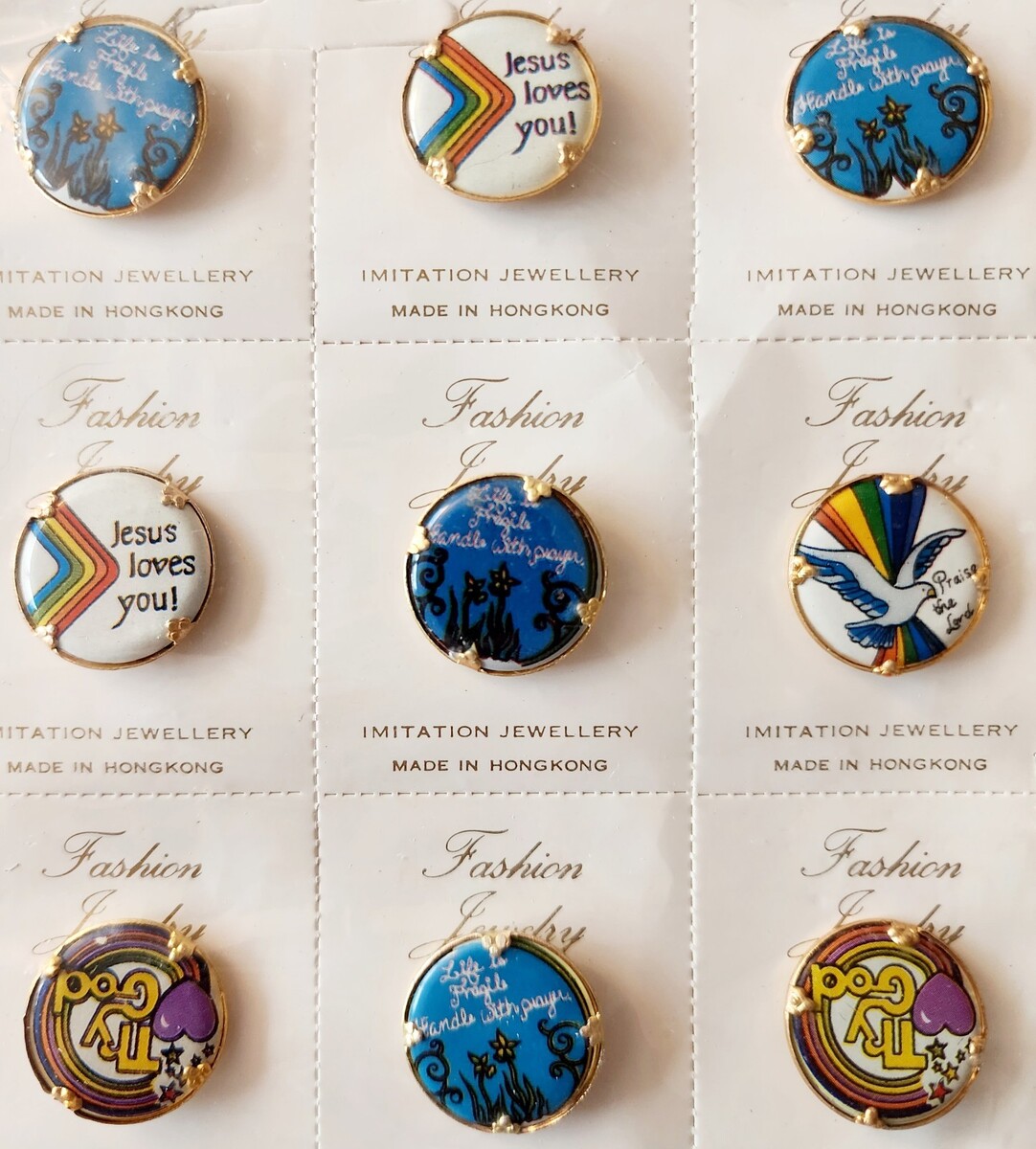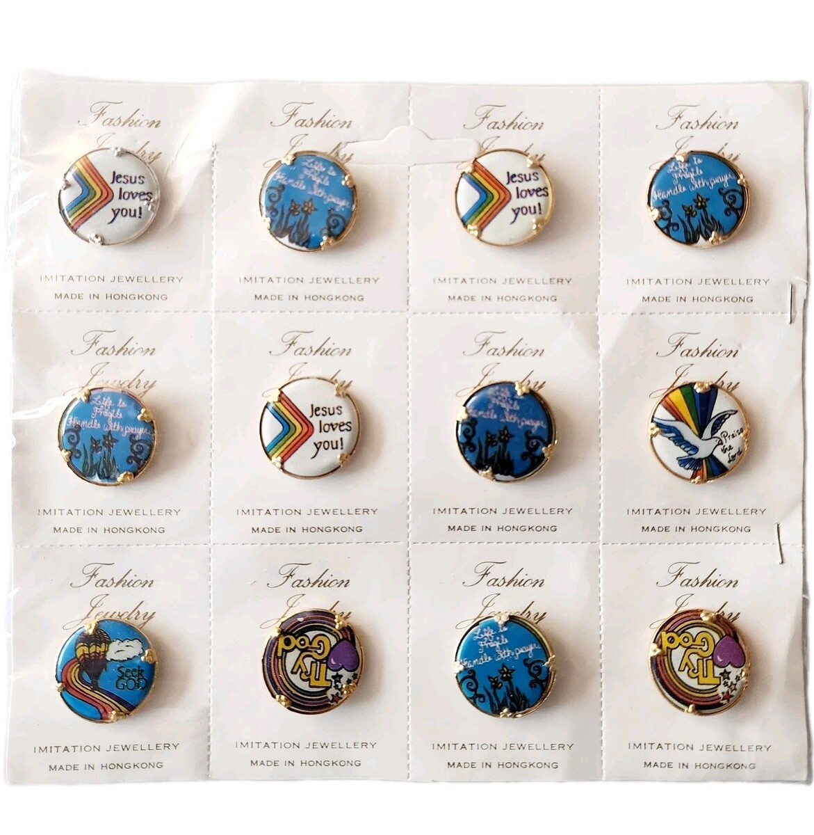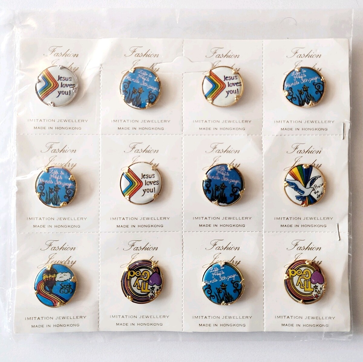 - Vintage SEALED Pin Buttons Religious Christian MCM Hong Kong Lot Of 12 NOS F7