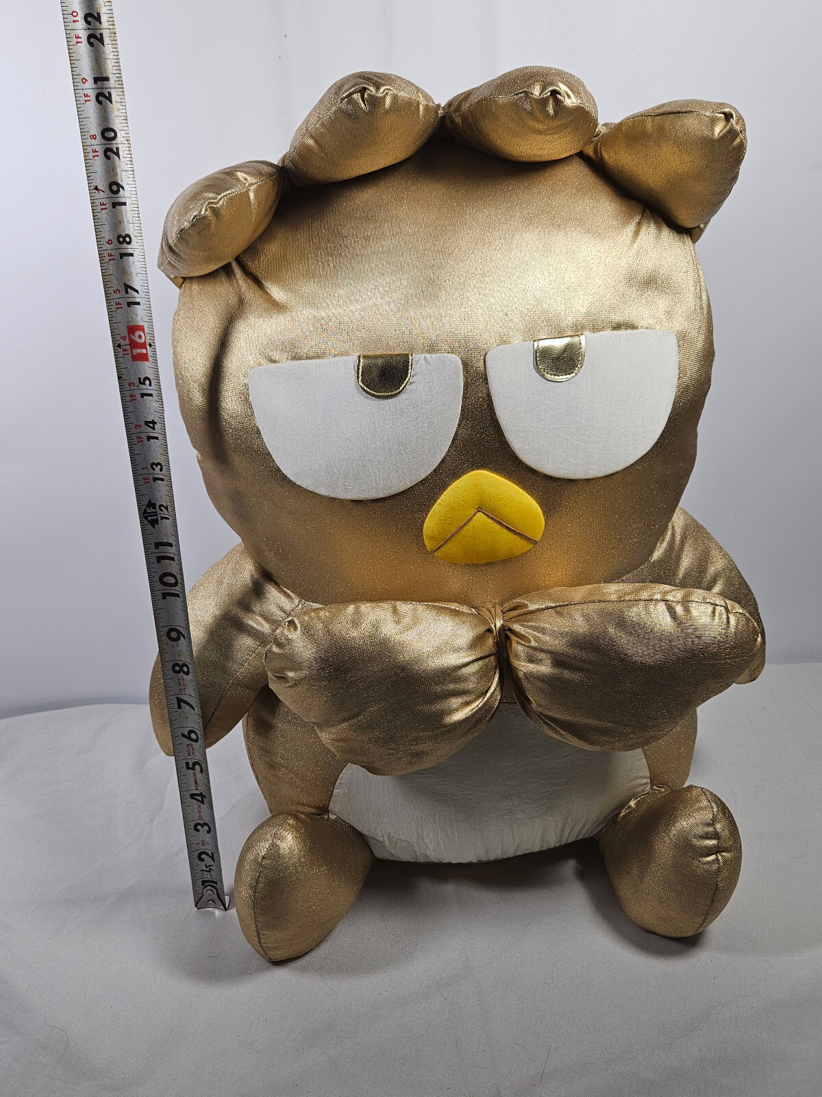 - Vintage Sanrio Smiles Badtz-Maru Jumbo 21 XL Plush Stuffed Toy Shiny Gold 1998