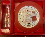 New Santa Snack Plate Milk Jar And Straw Set Santa's Cookie Plate Glass. Item is new, box is rough.