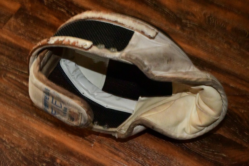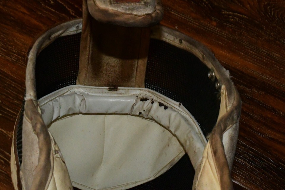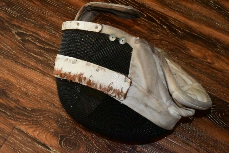 - Vintage Santelli NYC Fencing Helmet Mask Leather Cloth Wire Mesh GRADE C 517c2