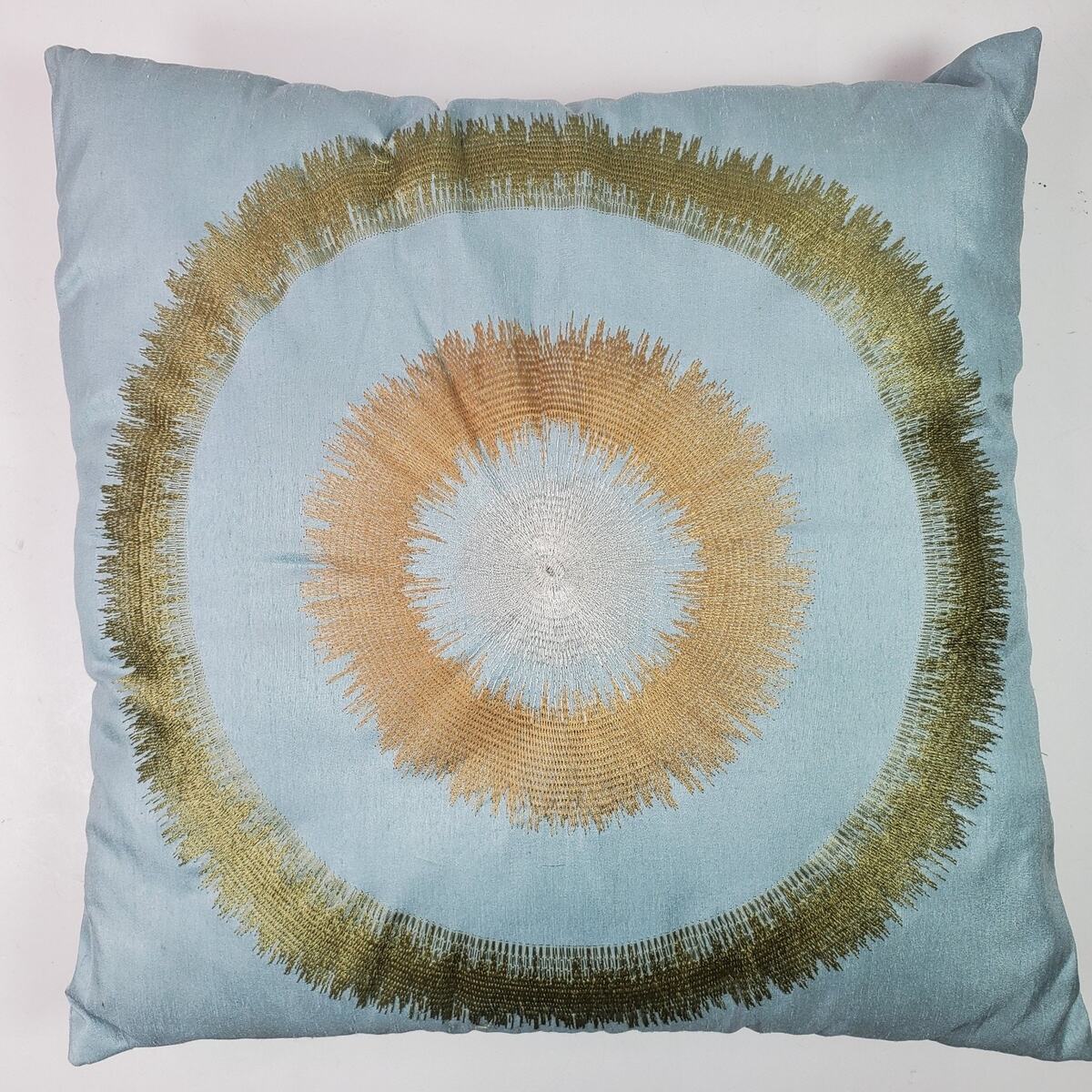 - Vintage Satin Designer Decorative Throw Pillows Blue w/ Starburst 17"
