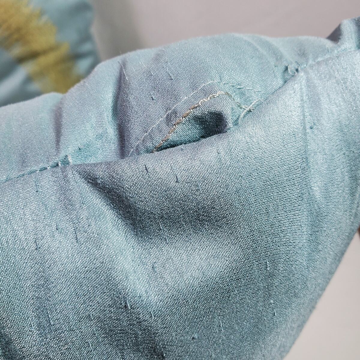 Vintage Satin Designer Decorative Throw Pillows Blue w/ Starburst 17"