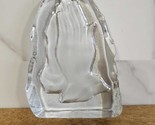 - Vintage Sculpted Glass Iceberg Praying Hands Paperweight Figurine
