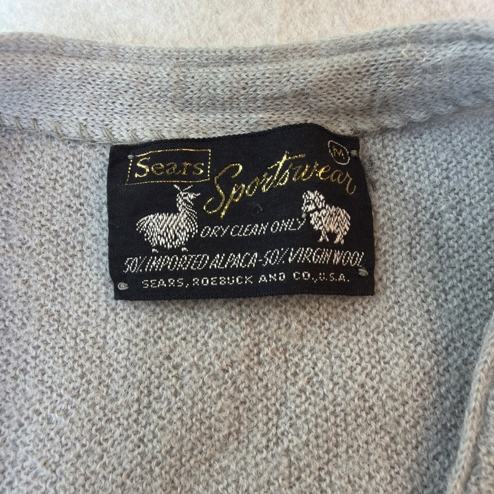 This vintage Sears Sportswear cardigan is a rare 50% alpaca / 50% virgin wool blend, made during the late 60s?early 70s era when Sears produced premium knitwear. Soft, lightweight, and warm with a refined minimalist design ? this piece fits perfectly into today?s Quiet Luxury, Old Money, and Grandpa Core trends.