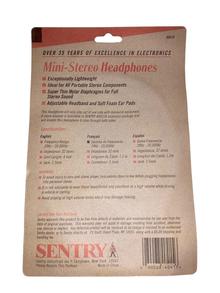 Experience the nostalgia of the 1980s with these vintage Sentry HO415 mini stereo headband headphones. The black color and foam tips provide a comfortable and stylish look, while the adjustable headband ensures a perfect fit. These headphones have a frequency range of 20Hz - 20,000Hz and an impedance of 32 ohm, delivering high-quality sound for all your audio needs.