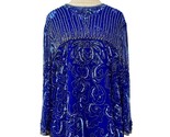 - Vintage Sequin Beaded Top Womens Size 20 Cobalt Blue Silver Dressy 3/4 Sleeves
