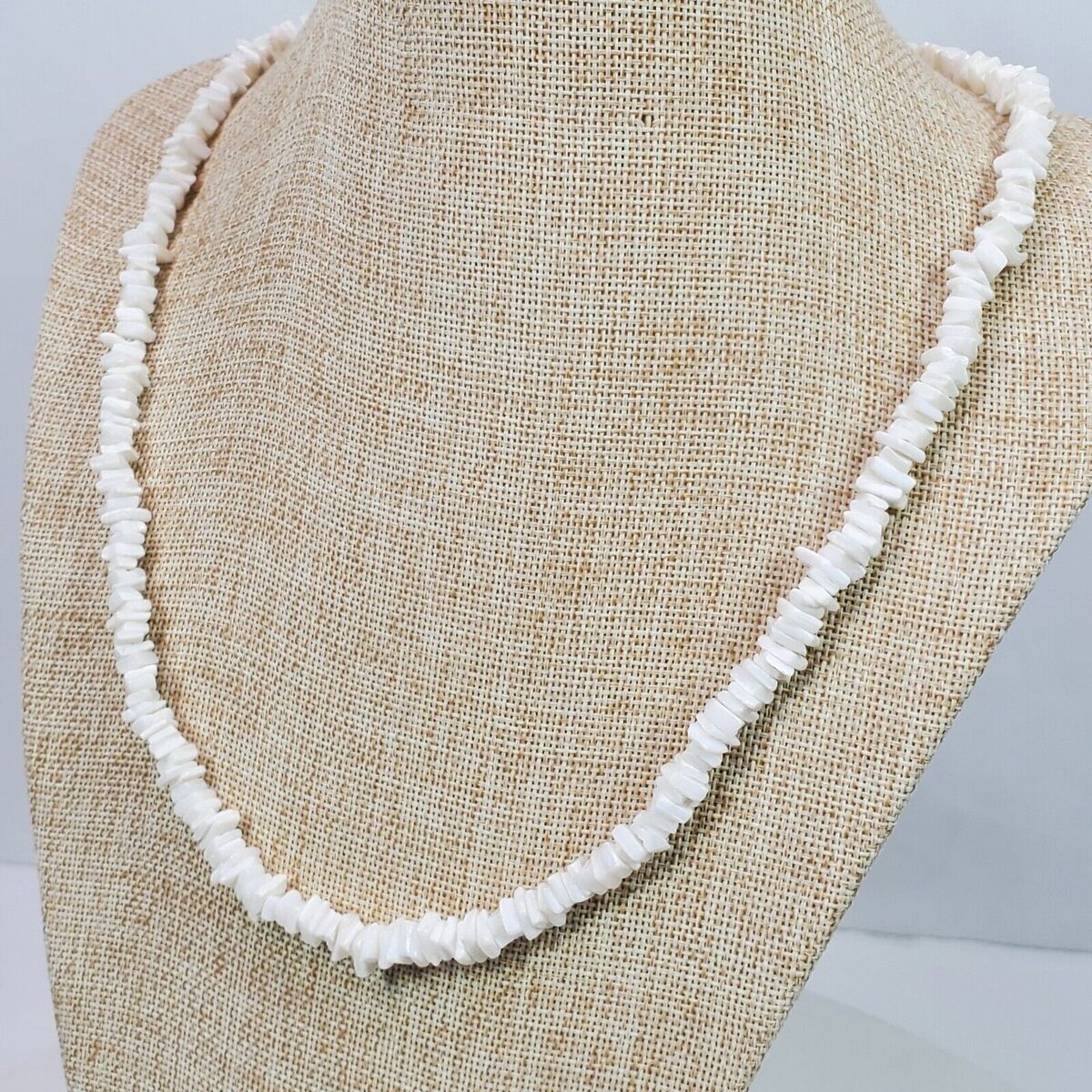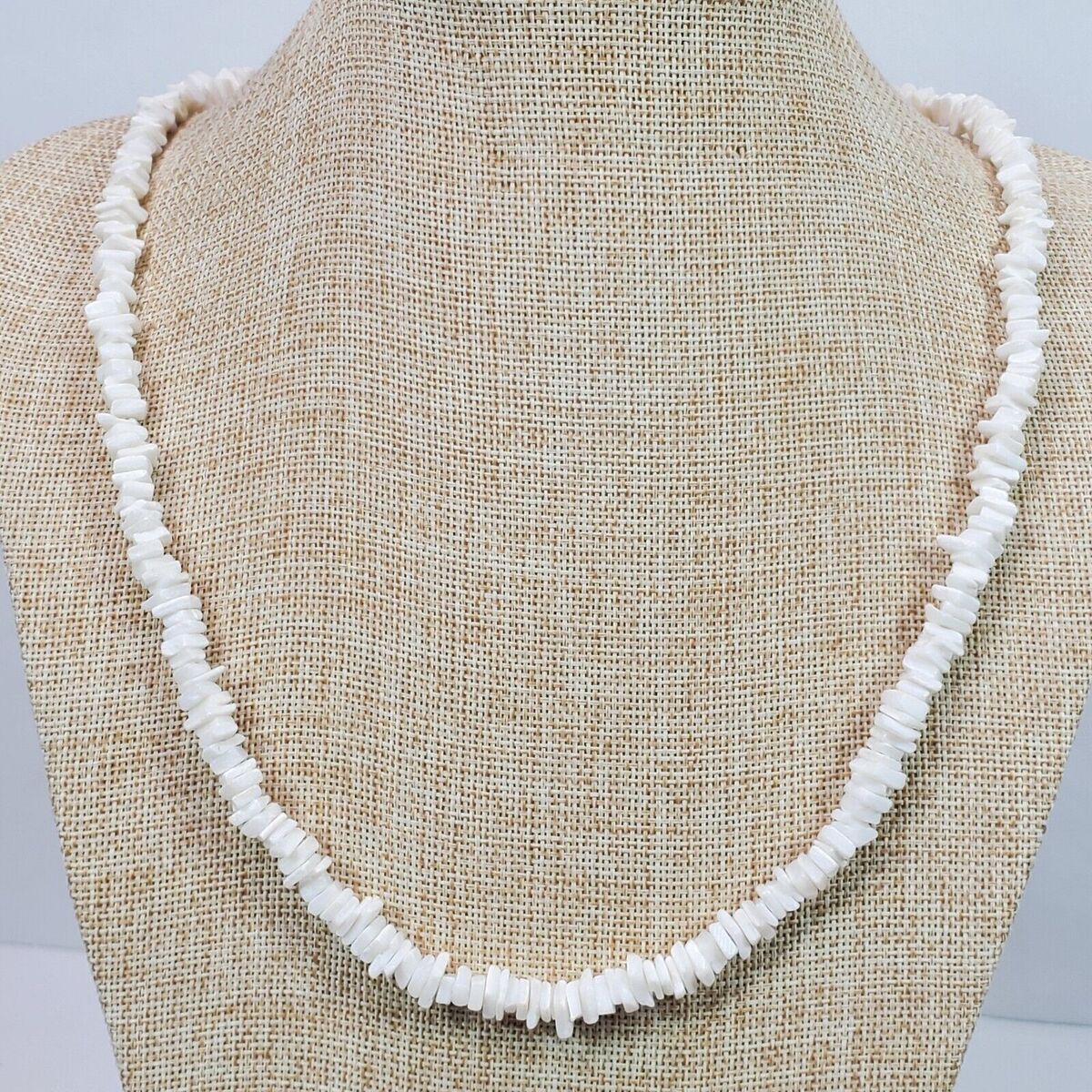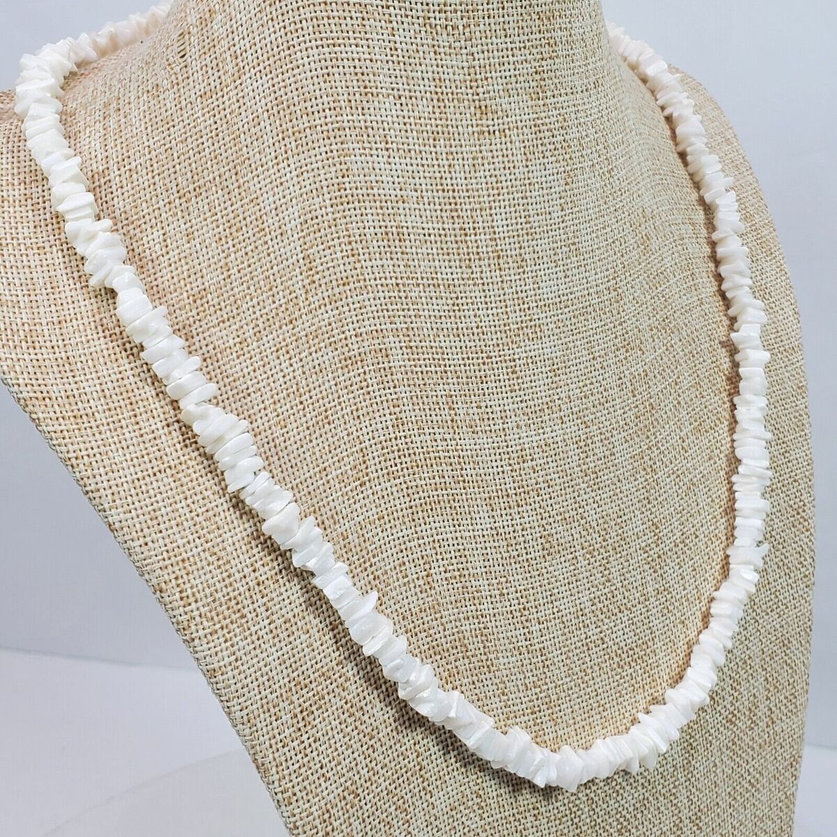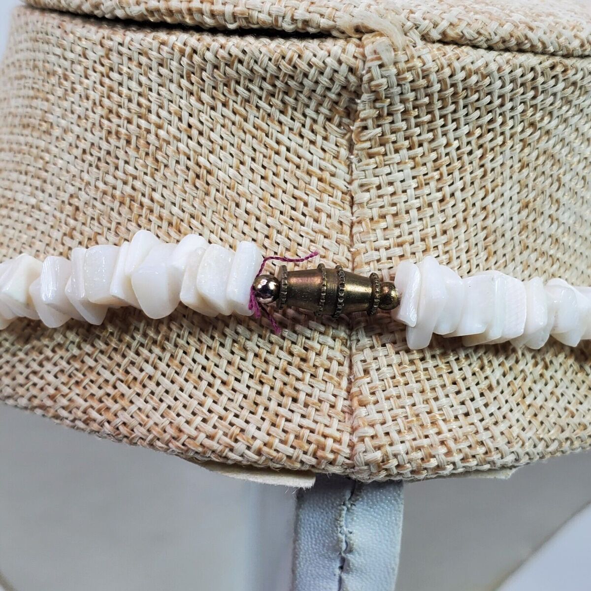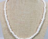 - Vintage Shell Chip Beaded Necklace Barrel Clasp 24 Inch Long White