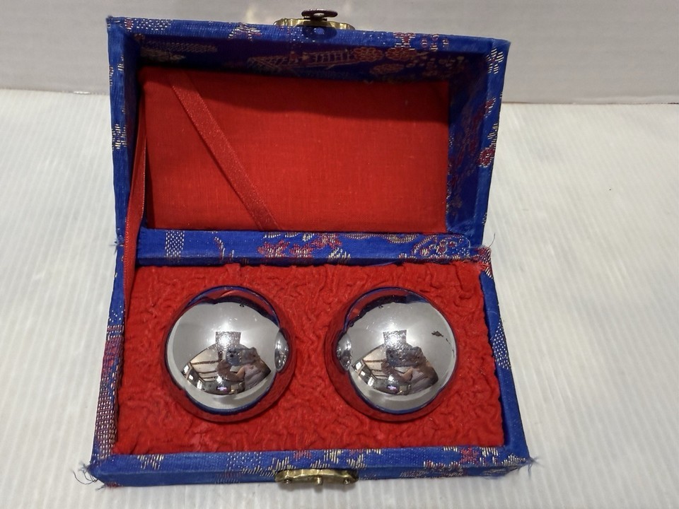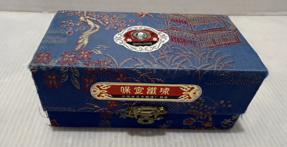 - Vintage ShouXing Iron Ball Direction Chiming Meditation Balls Original Case Book