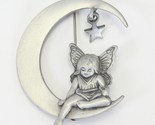 - Vintage Signed JJ Silver Tone Angel Sitting on Half Moon Star Celestial Brooch
