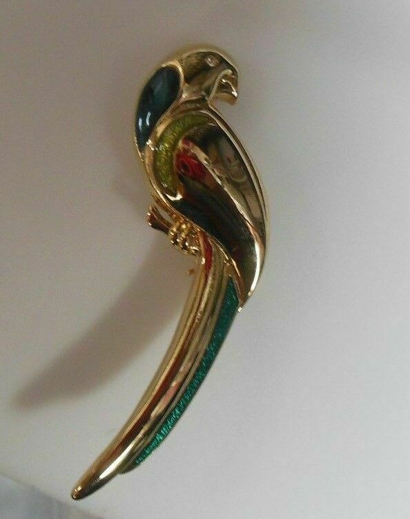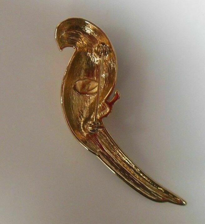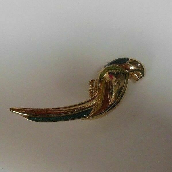 - Vintage Signed LC Gold-tone W/Blue/Green Accents Parrot Brooch Rhinestone Eye