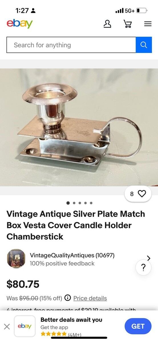 - Vintage Silver Plate Match Box Candle Holder Chamberstick