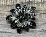 - Vintage Silver Tone Black Enamel Flower Floral Brooch Pin Fashion Jewelry KG