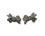 Vintage Silver Tone Bows Clip On Earrings Costume Jewelry 1"