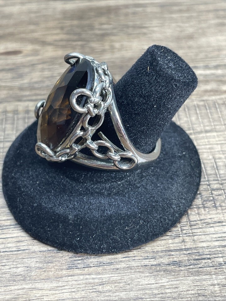 Vintage Silver Tone Brown Stone Boho Hippie Ring Size 8 KG JD