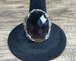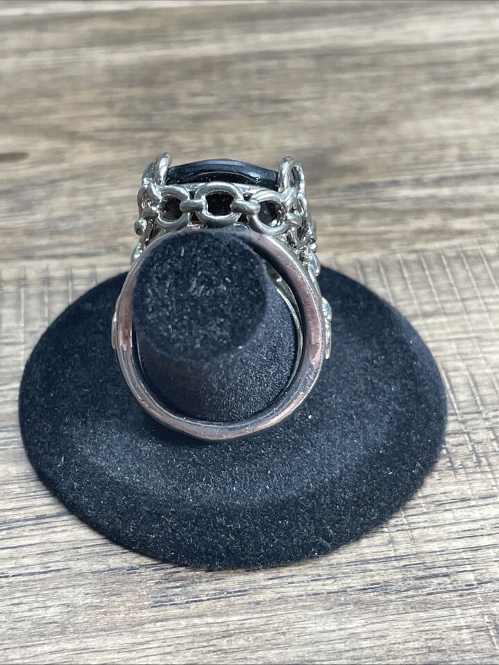 - Vintage Silver Tone Brown Stone Boho Hippie Ring Size 8 KG JD