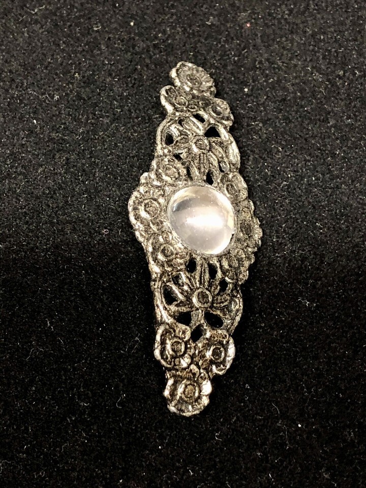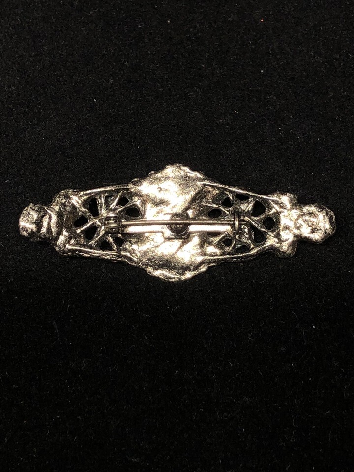 - Vintage Silver Tone Faux White Stone Brooch Pin 2 3/8” X 1” Costume Jewelry