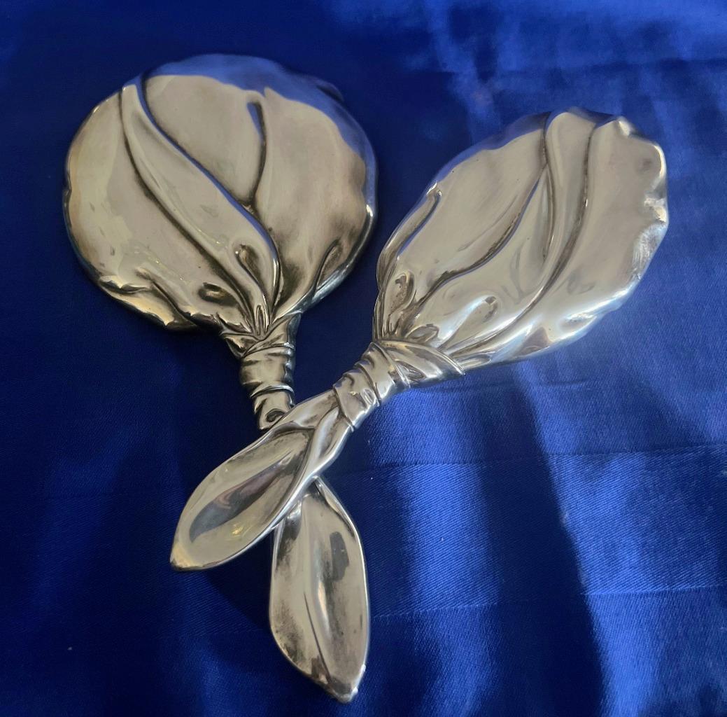 - Vintage Silver Tone Godinger Hand Mirror & Hair Brush Set
