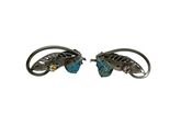 - Vintage Silver Tone Leaf Teal Stone Clip On Earrings Boho Retro Germany Earbobs