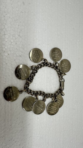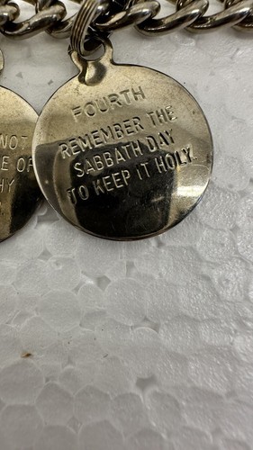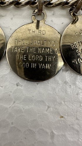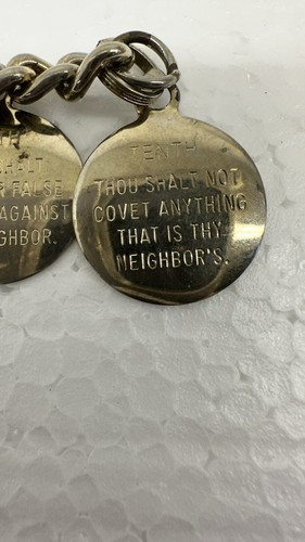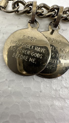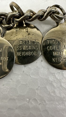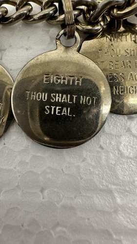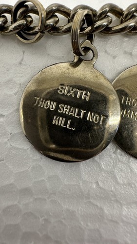 - Vintage Silver Tone Round 9 Of 10 Commandments Charm Bracelet Religious