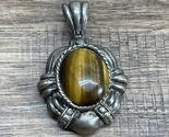 - Vintage Silver Tone Tiger's Eye Pendant Charm Estate Jewelry Find KG