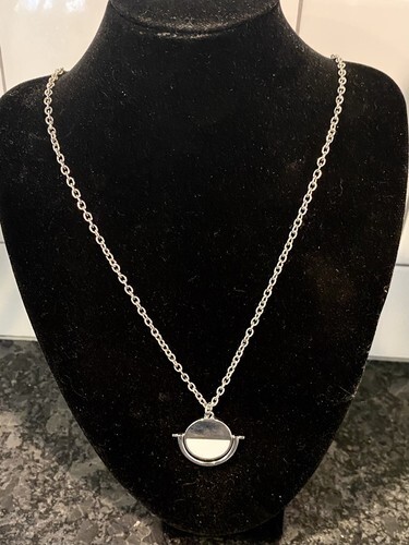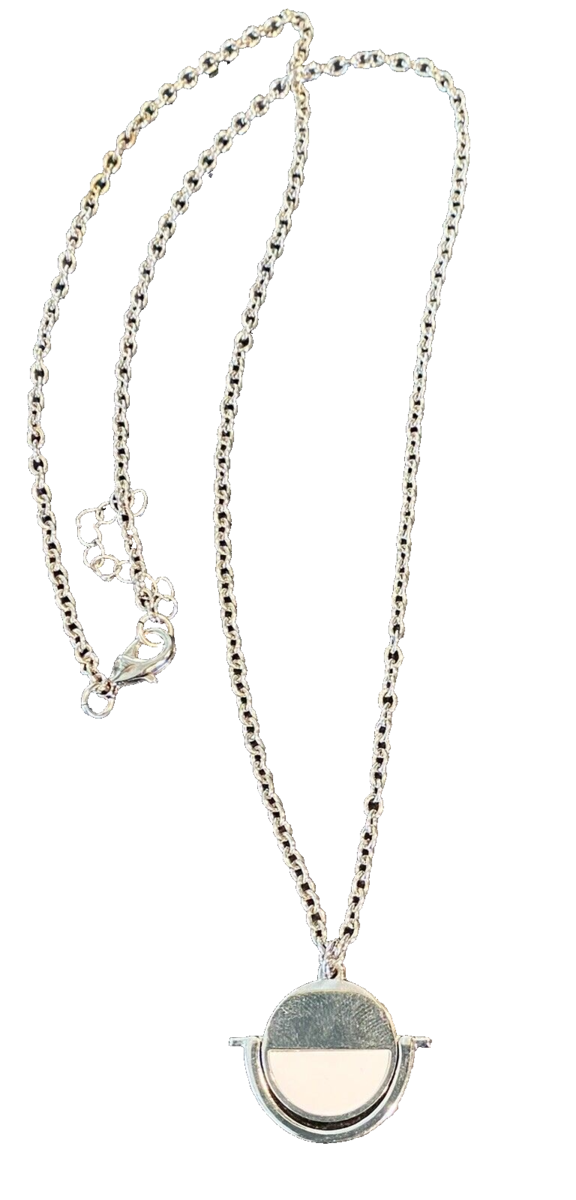Silver-Tone Chain with Silver and White Enamel Pendant