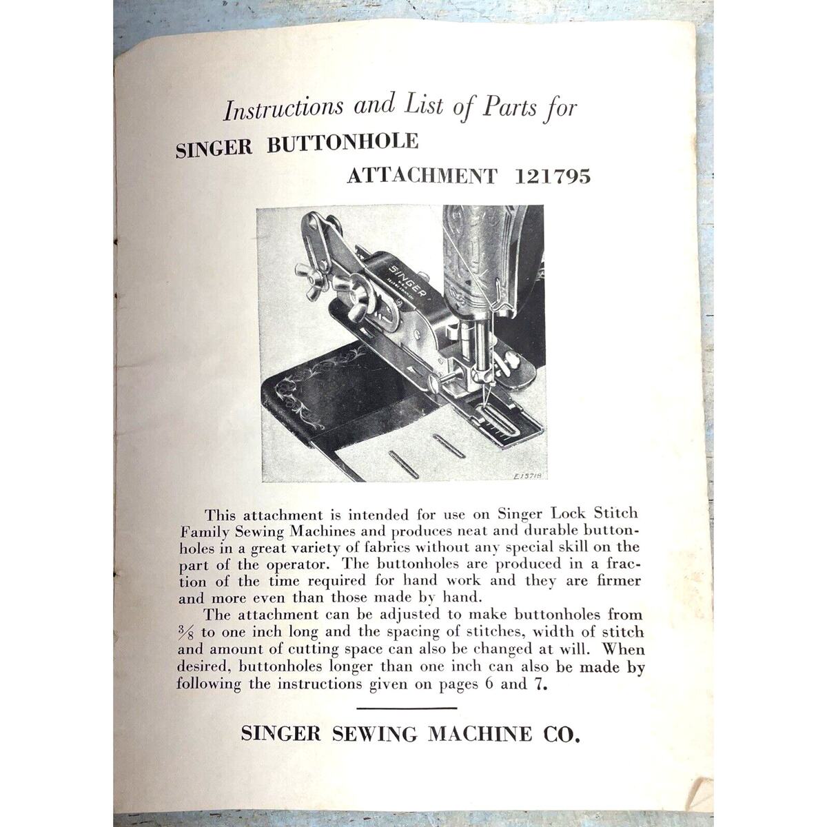 - Vintage Singer Buttonhole Attachment No. 121795 w/ Instructions & Original Box