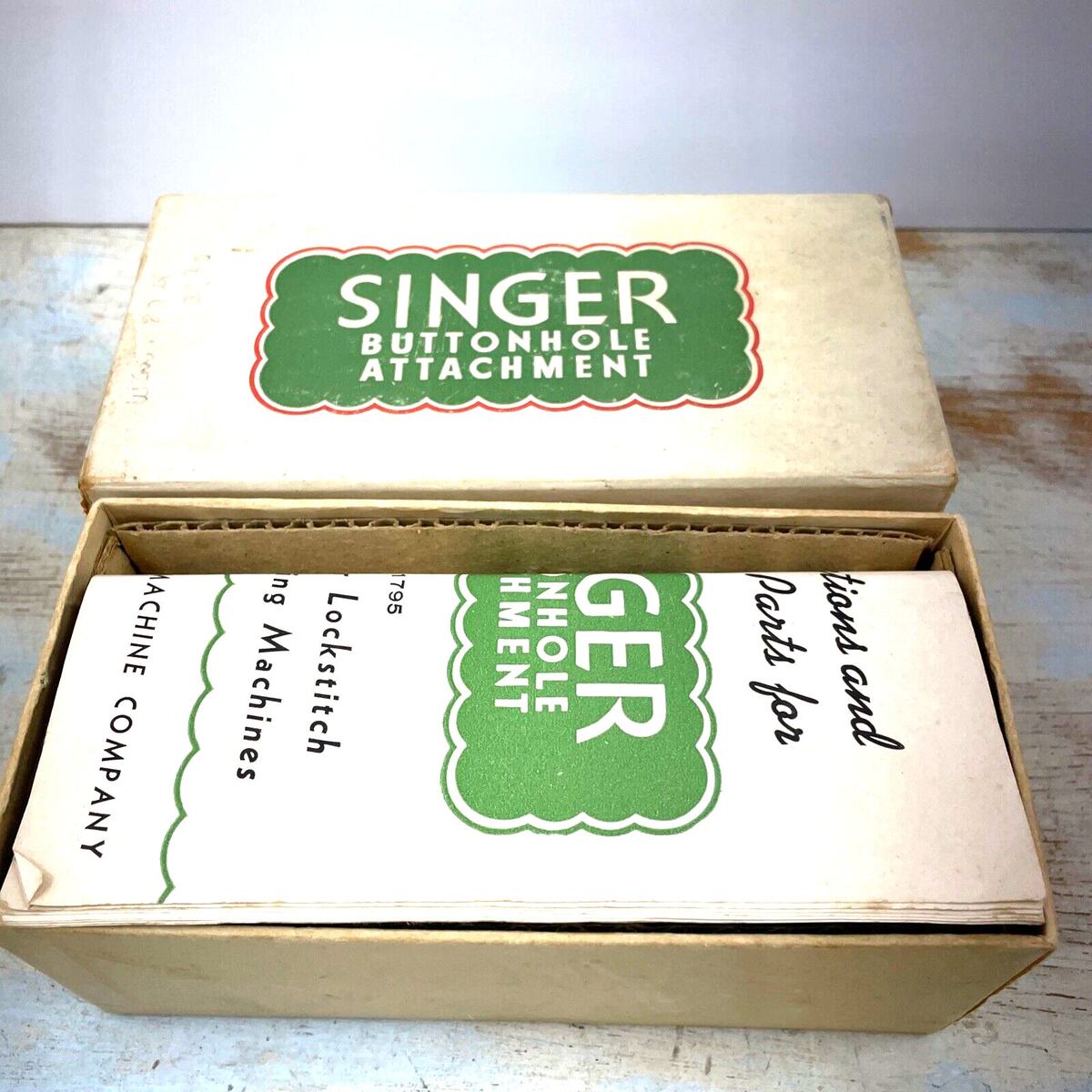 2515. Vintage Singer Buttonhole Attachment No. 121795 w/ Instructions Original Box. Beautiful vintage condition. All metal and sturdy. Please look at the pictures. Always consider offers.