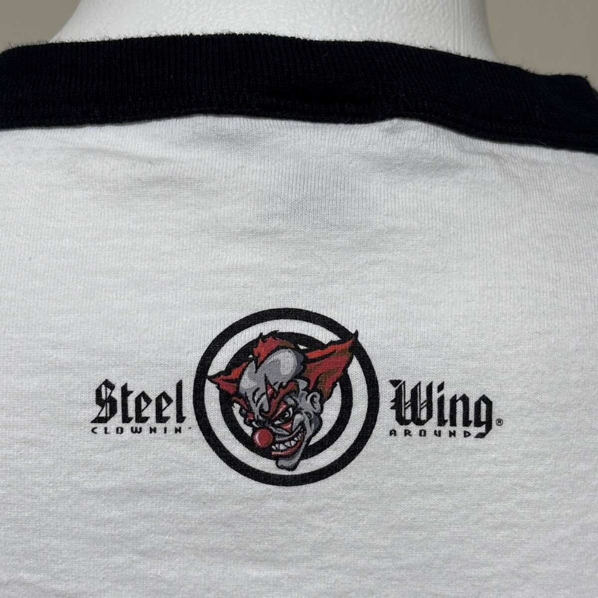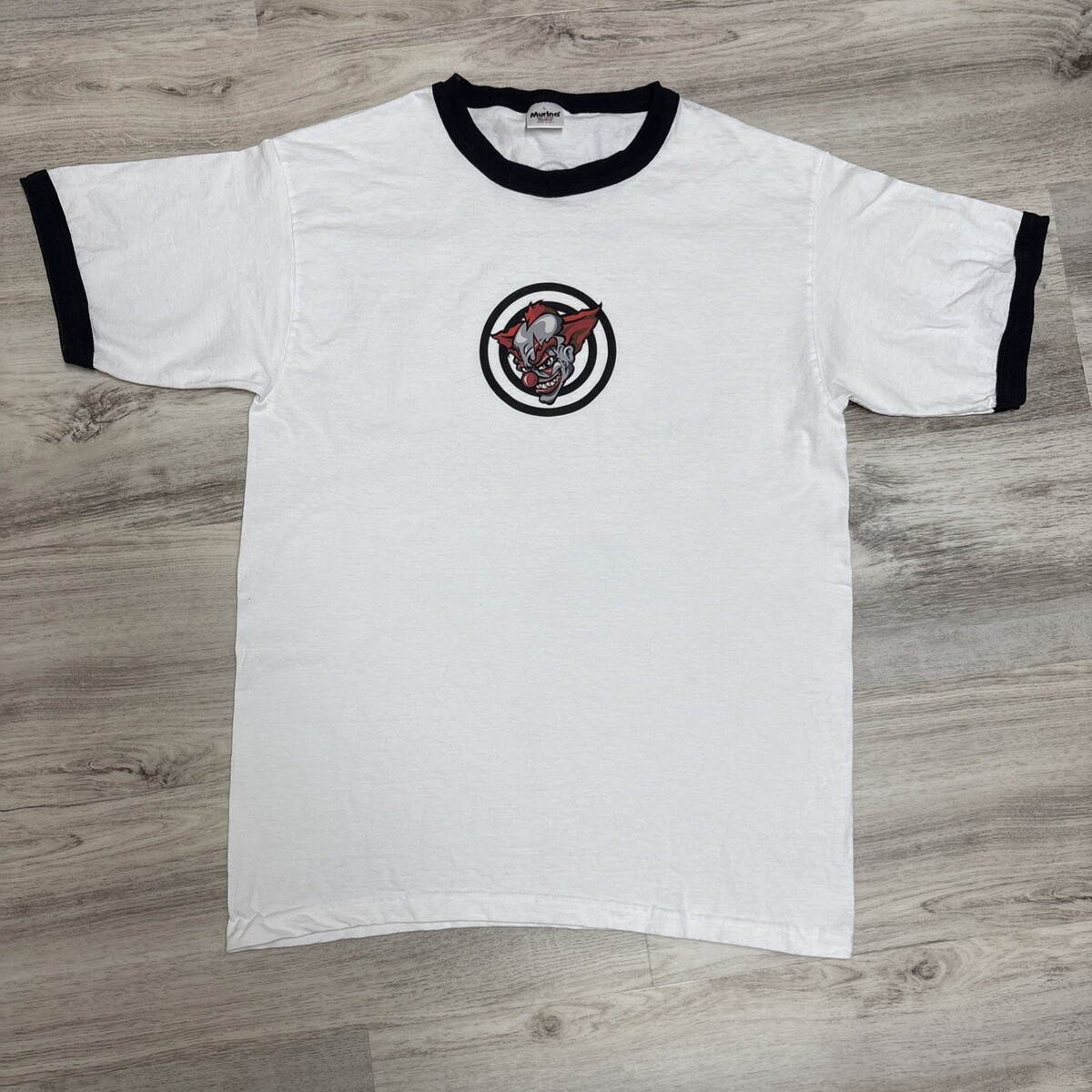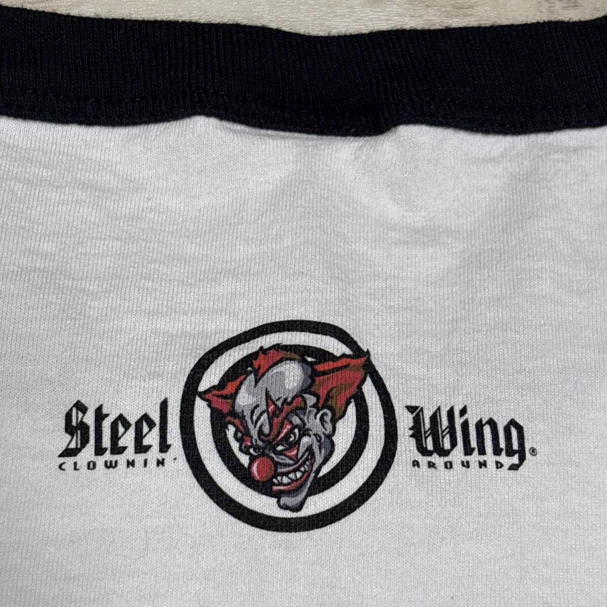 - Vintage Single Stitch Ringer Shirt Mens L Clown Target Steel Wing 80s Murina
