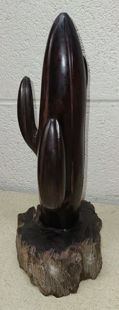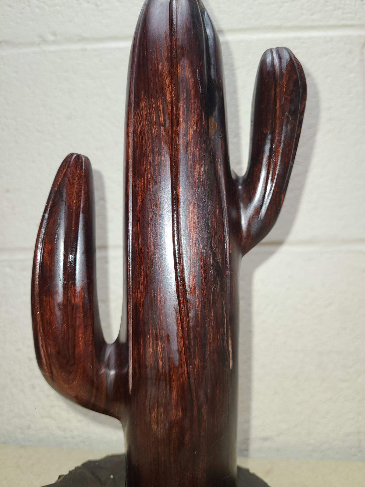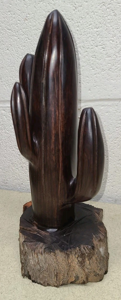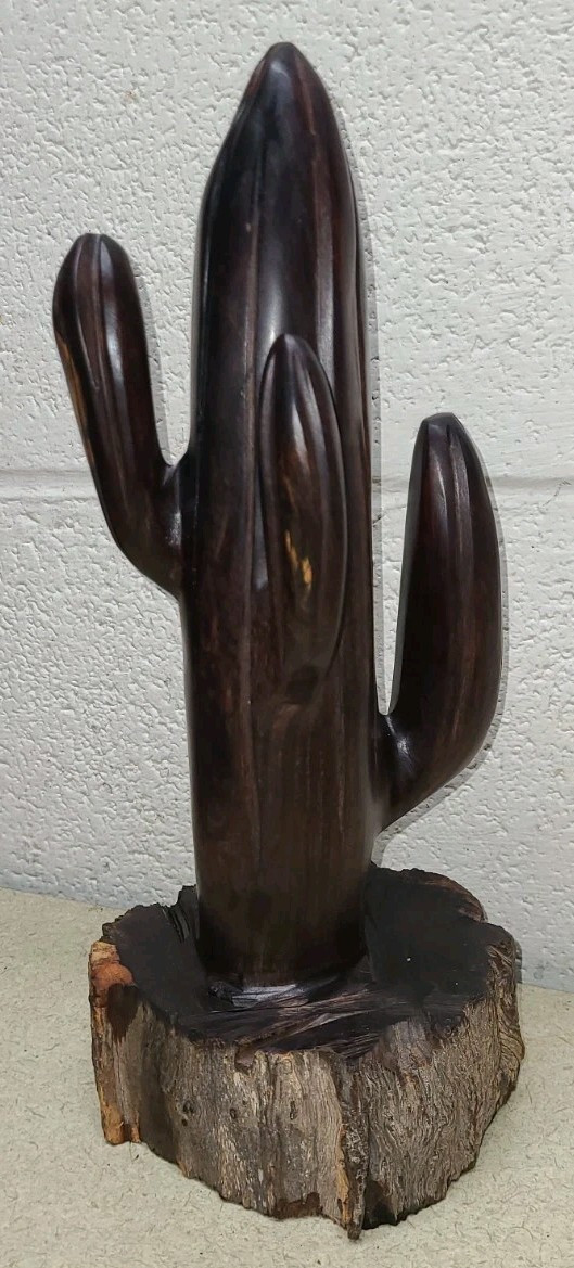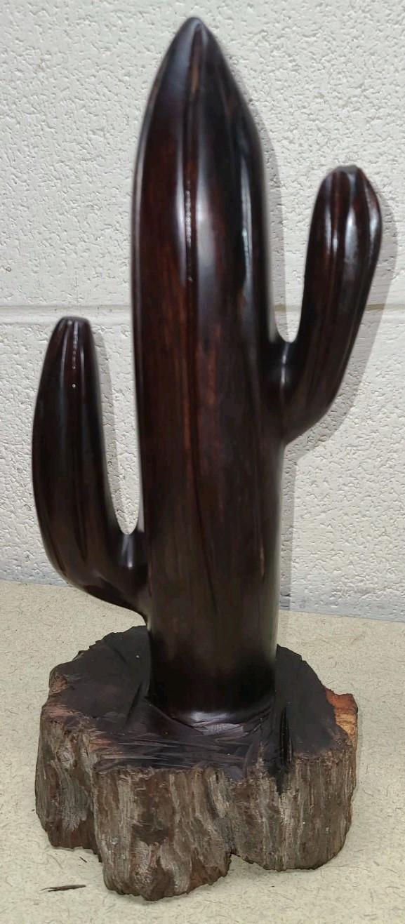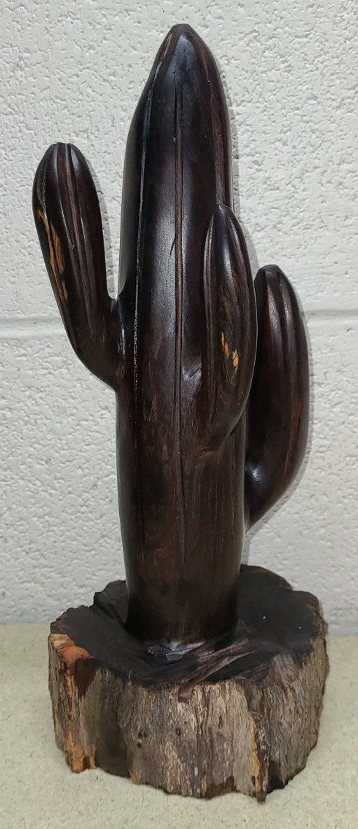 - Vintage Solid Wood Hand Carved Sculpture Cactus Southwestern 12.5” Tall