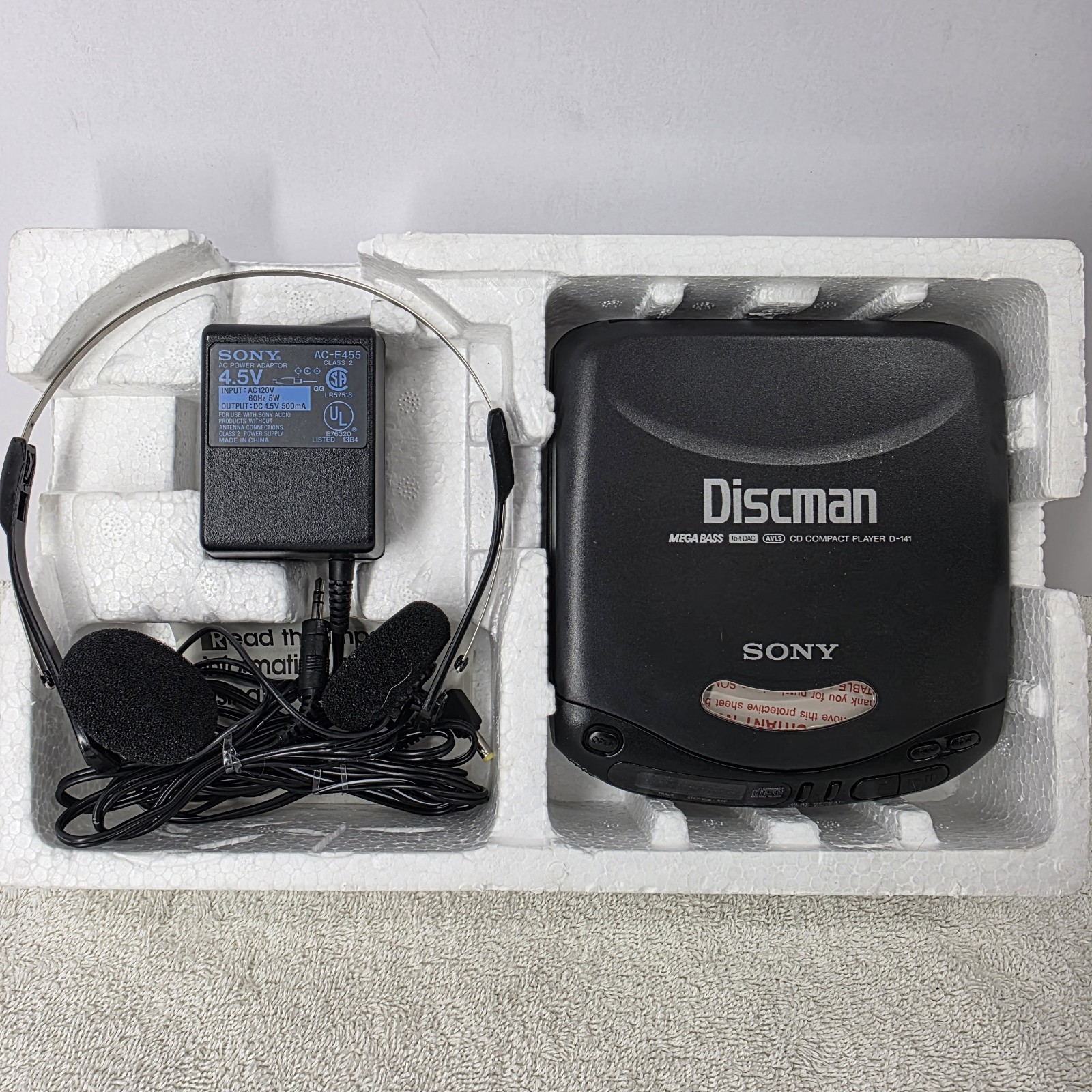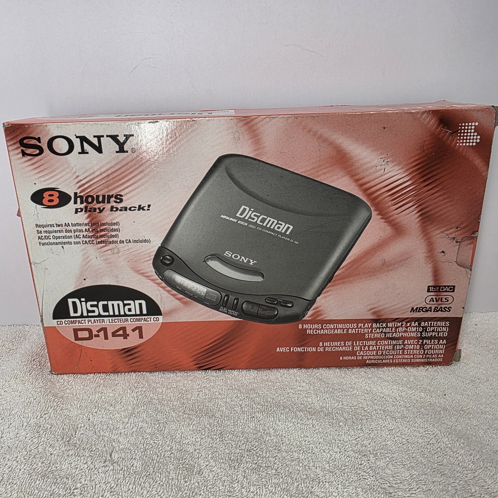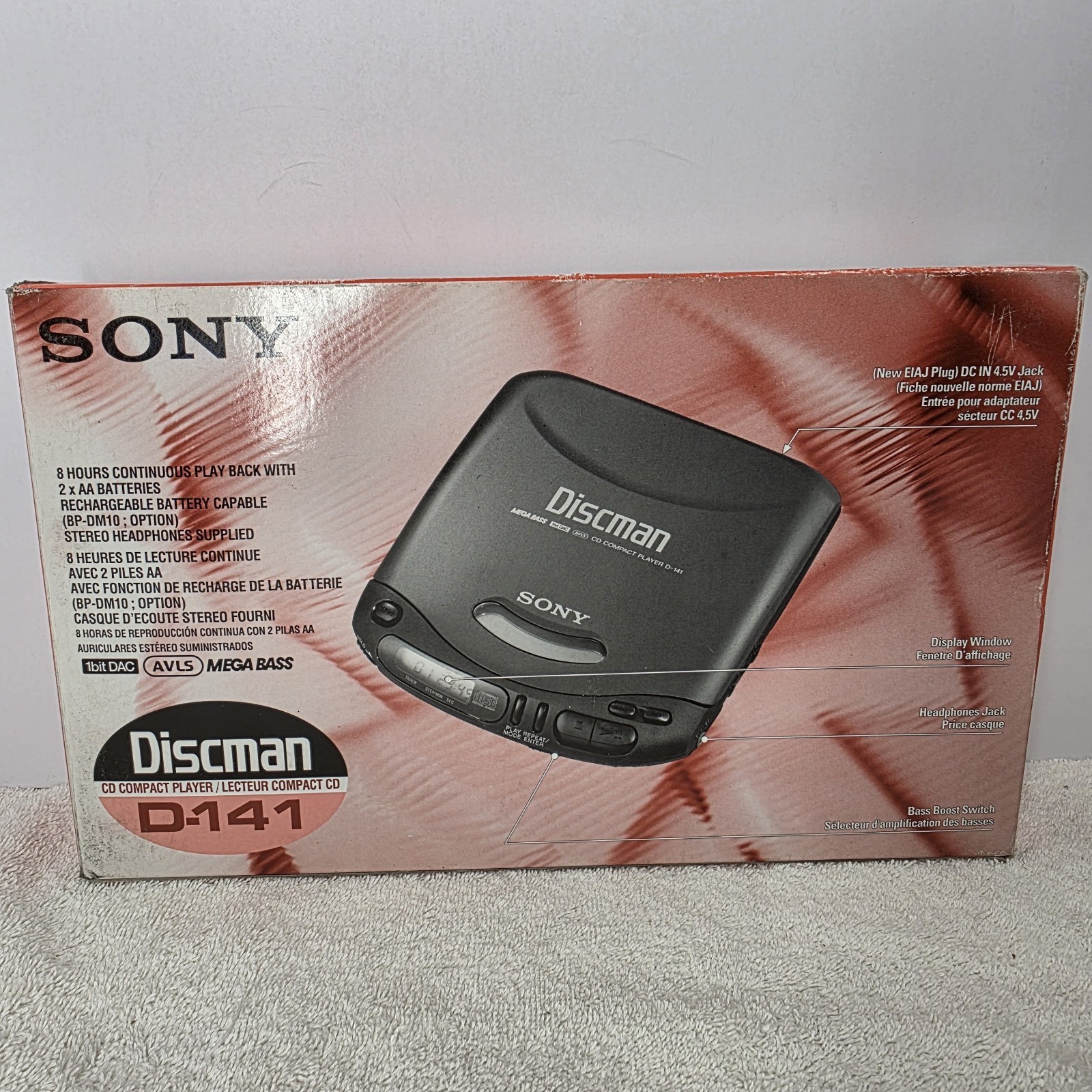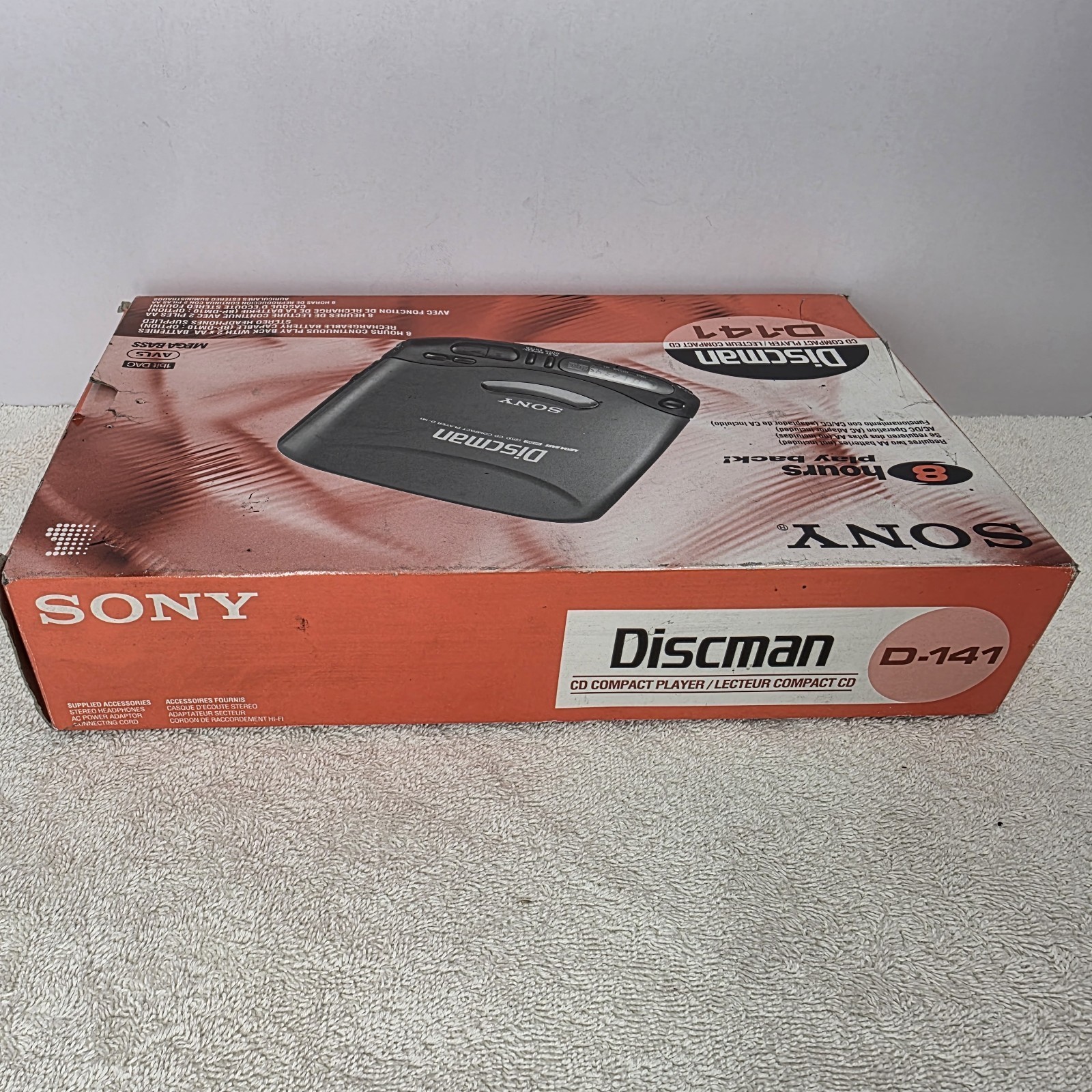 - Vintage SONY DISCMAN D-141 with Box AC Adaptor *PARTS ONLY* Spins Says No Disc
