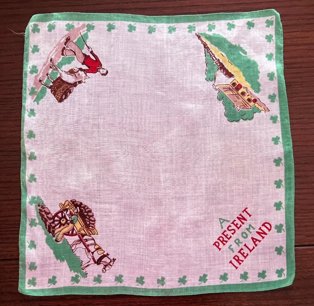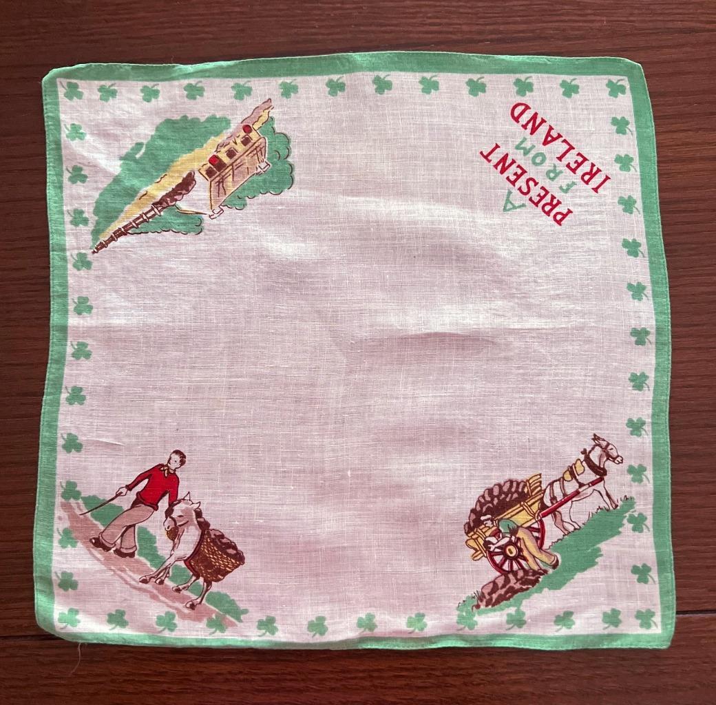 - Vintage Souvenir Irish Linen Handkerchief From Ireland w Symbols Green Shamrocks