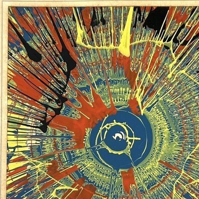 Colorful vintage spin art painting, likely 1960s?1970s era.