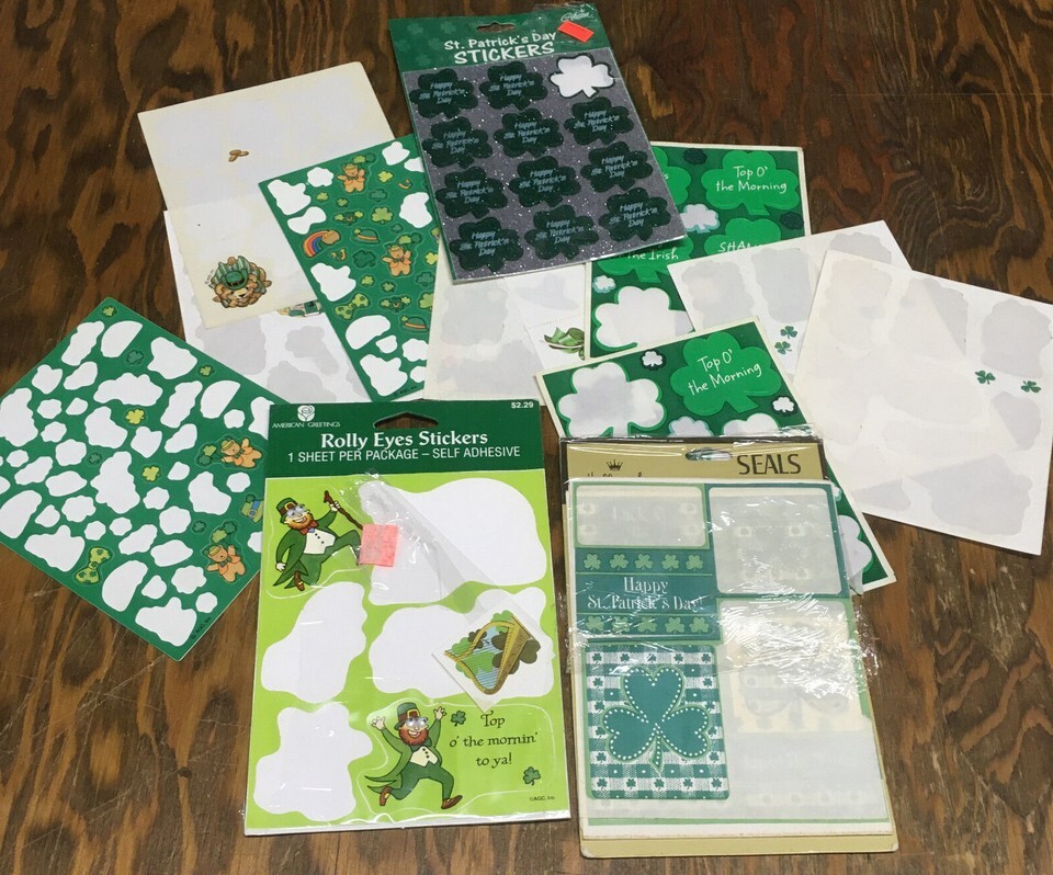 - Vintage St. Patrick's day stickers and seals rolly eye stickers shamrock sticker