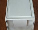 A vendre est un classeur Staco Tuf-File vintage d'occasion en kaki. Le classeur est fait de plastique epais ou de fibre de verre et presente des signes d?usure legere. Mesures: 14 hauteur x 14 largeur x 18 profondeur