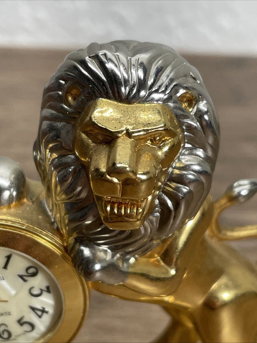- Vintage Standing Lion Shaped Xanadu 3.5" Two Tone Mini Clock KG JD