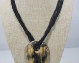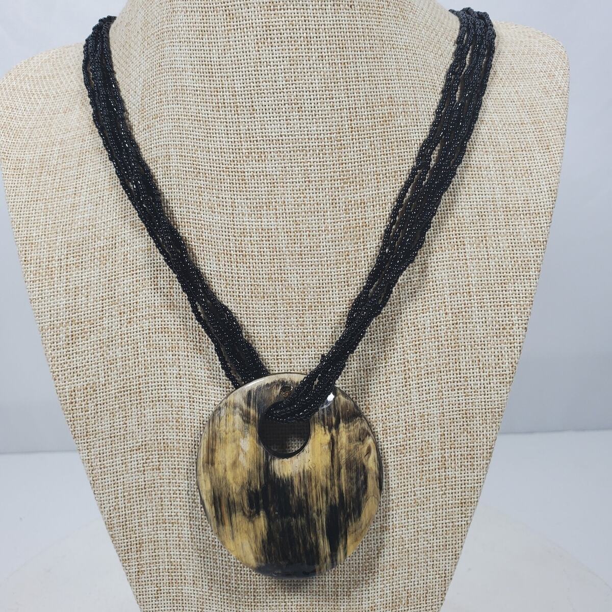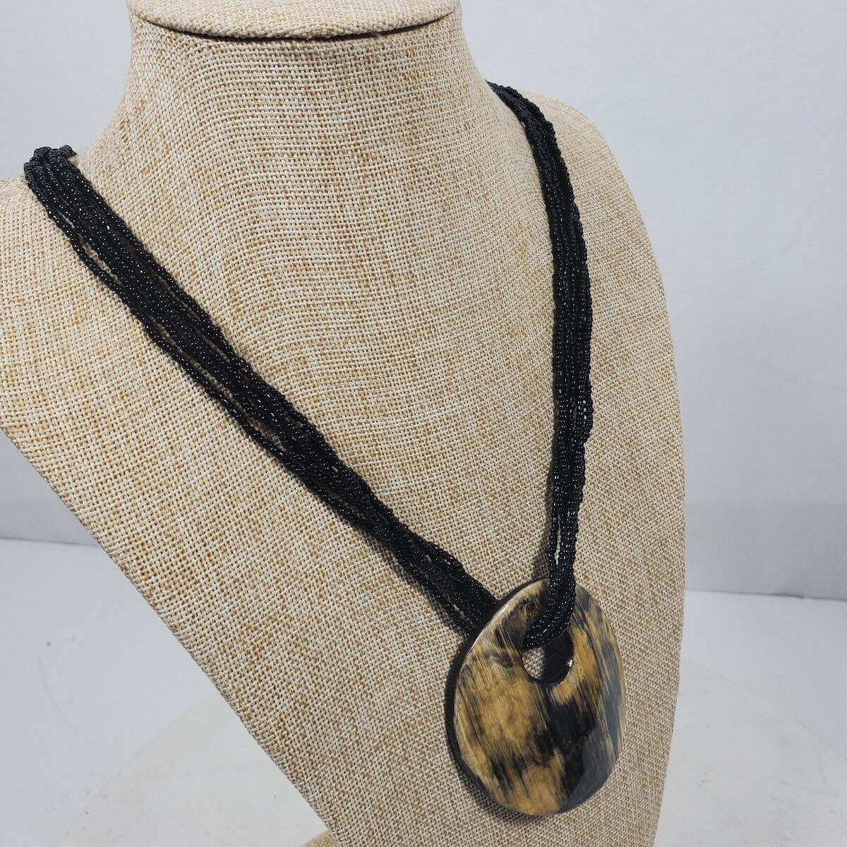 - Vintage Statement Necklace 22 Inch Black Seed Bead + 2.5 Inch Pendant