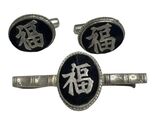 - Vintage Sterling Silver 925 Black Onyx cuff links & tie bar Chinese Fu