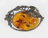 - Vintage Sterling Silver Amber and Grape & Leave Brooch Pin 15g