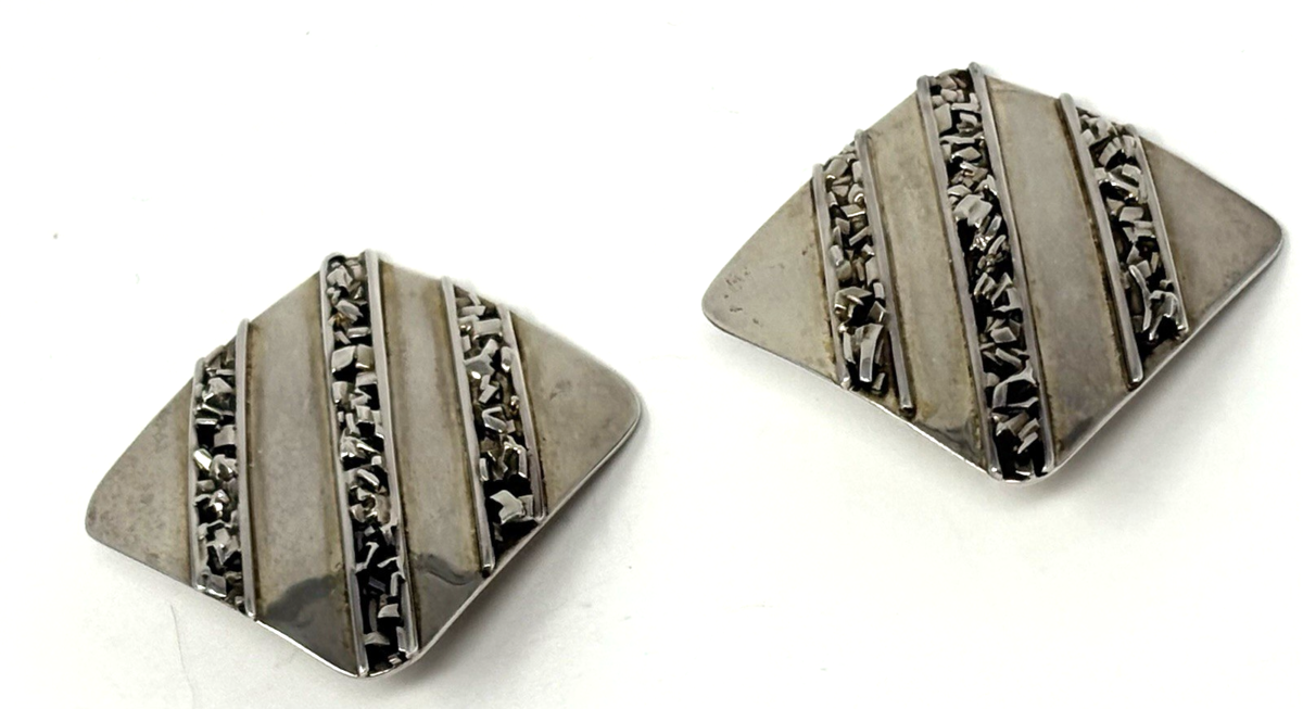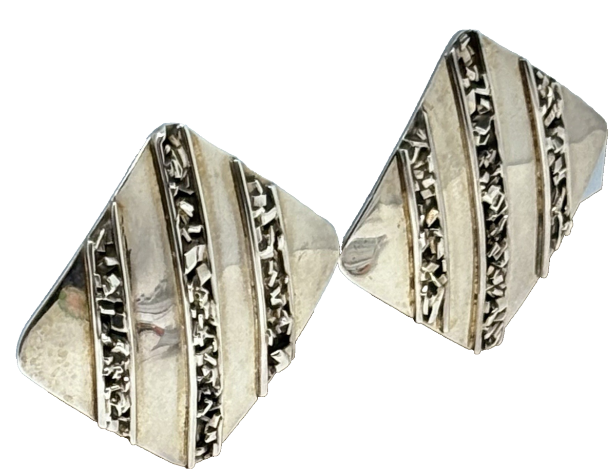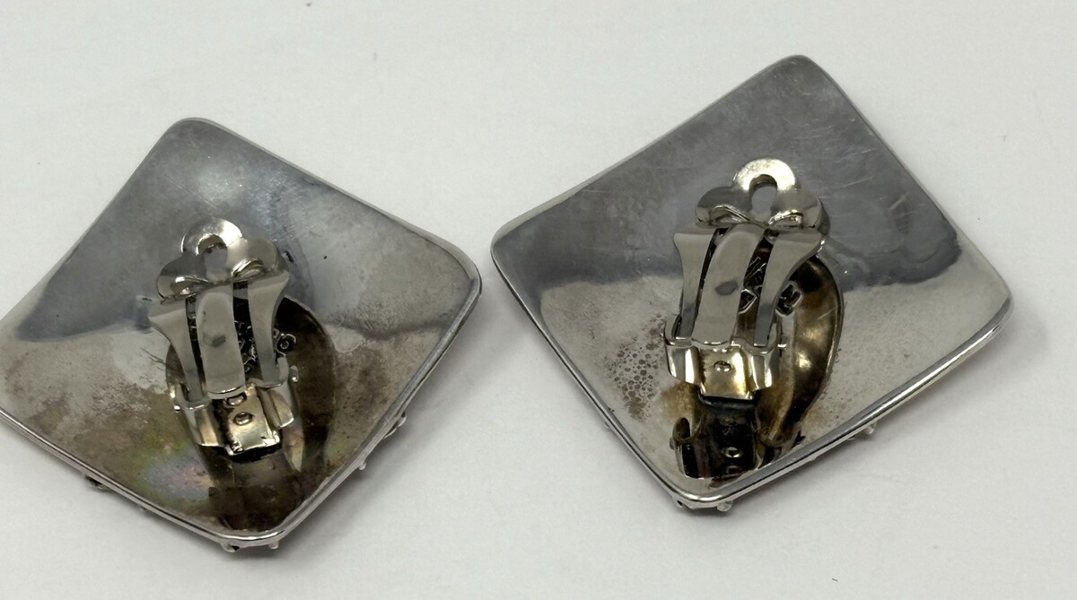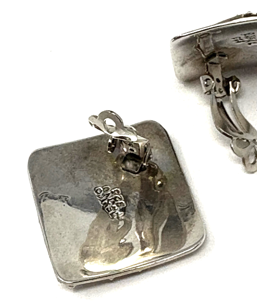 - Vintage Sterling Silver Artisan Clip-On Earrings, Mexico