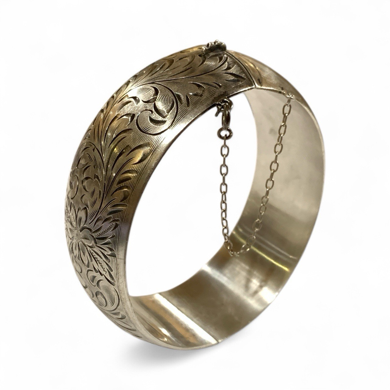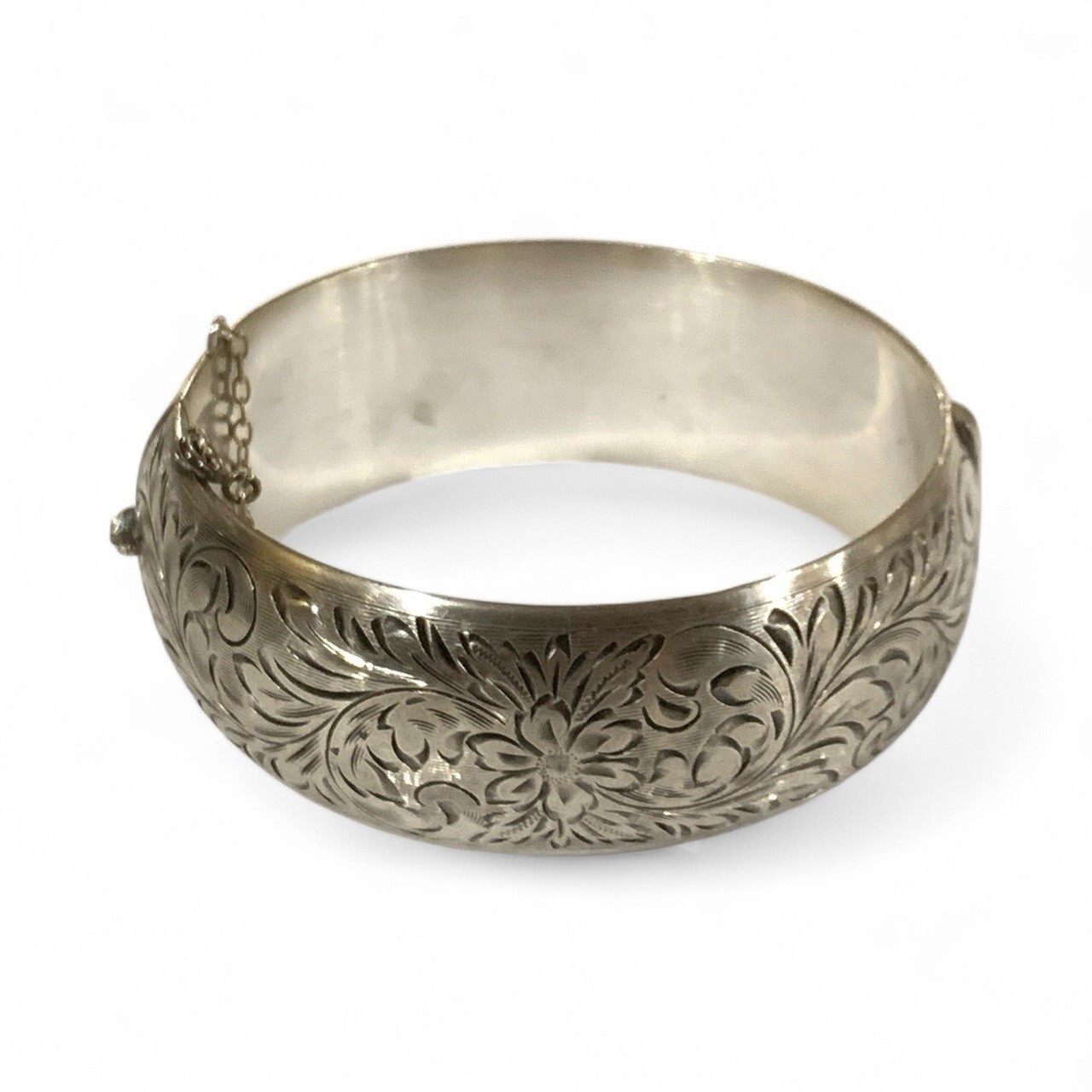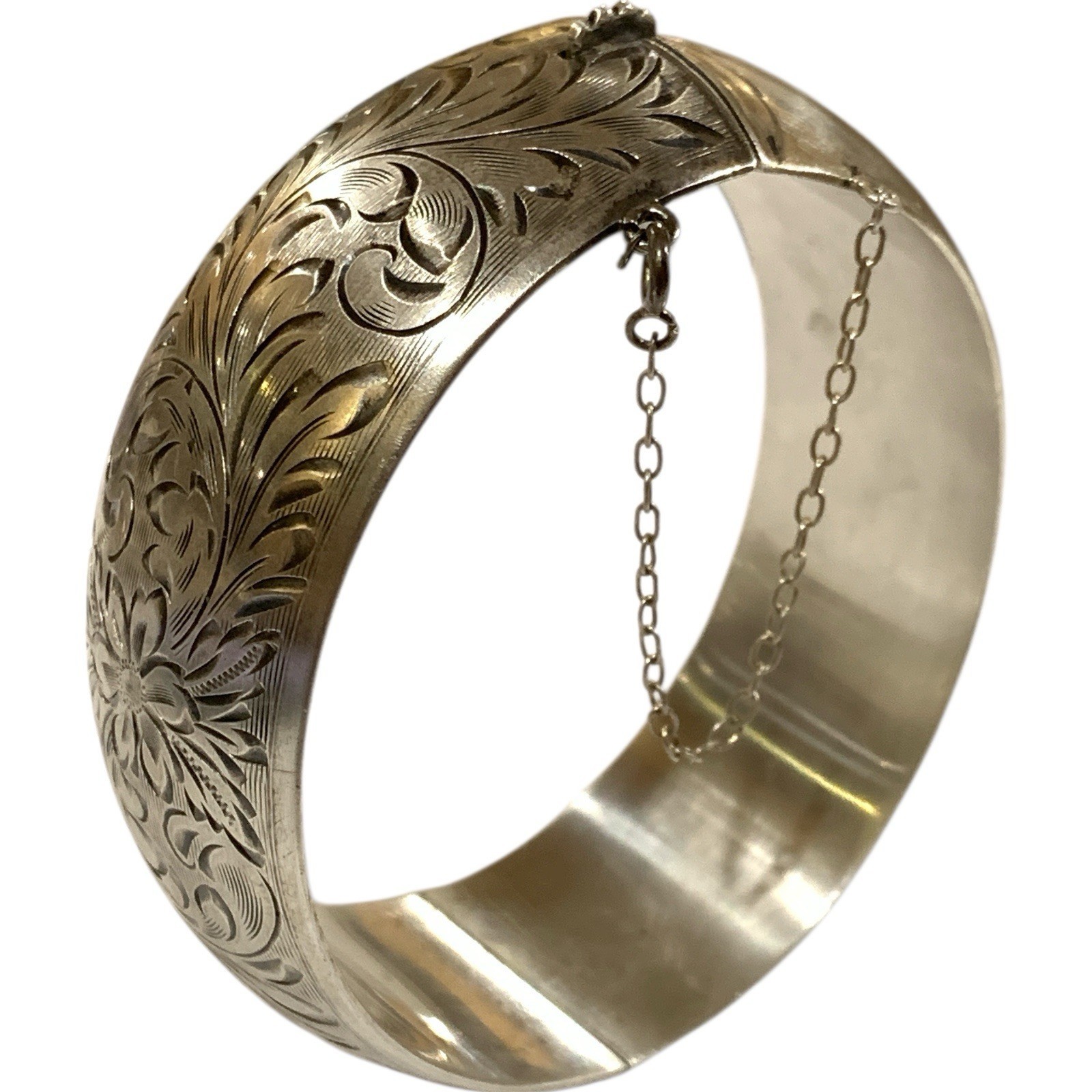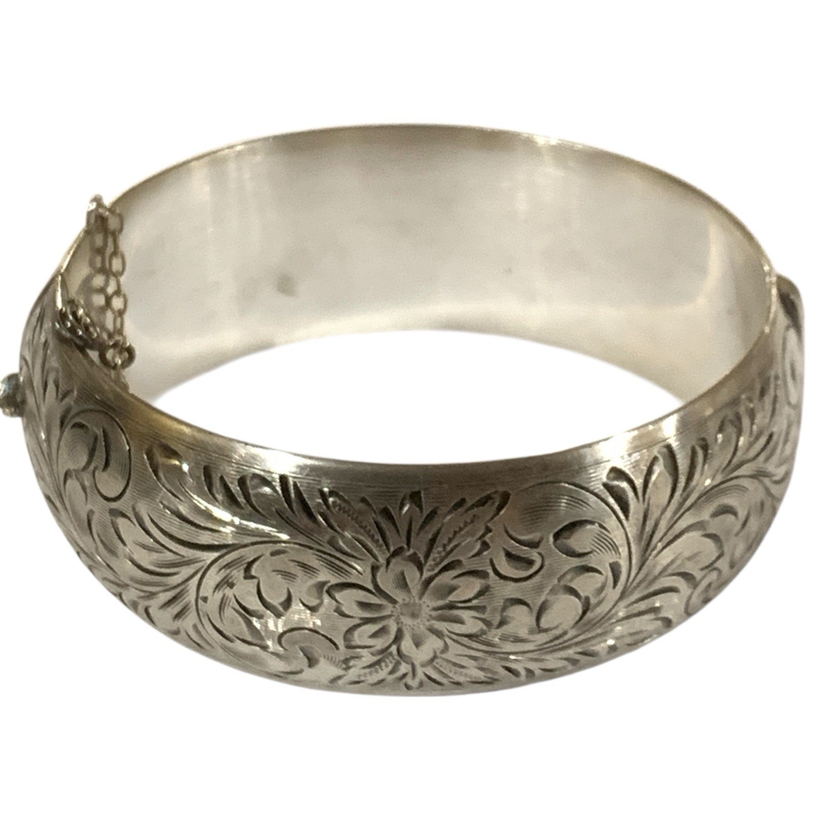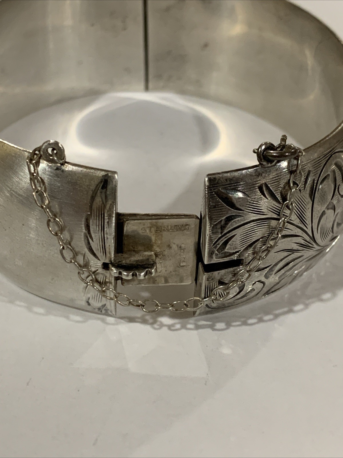 - VINTAGE STERLING Silver ETCHED HINGED BANGLE BIRKS CANADA