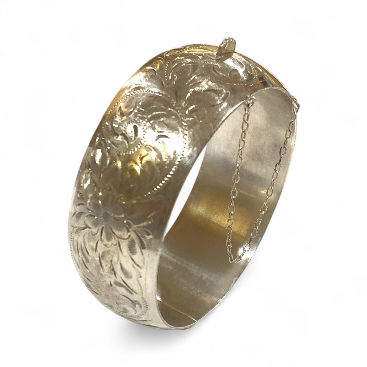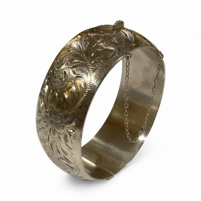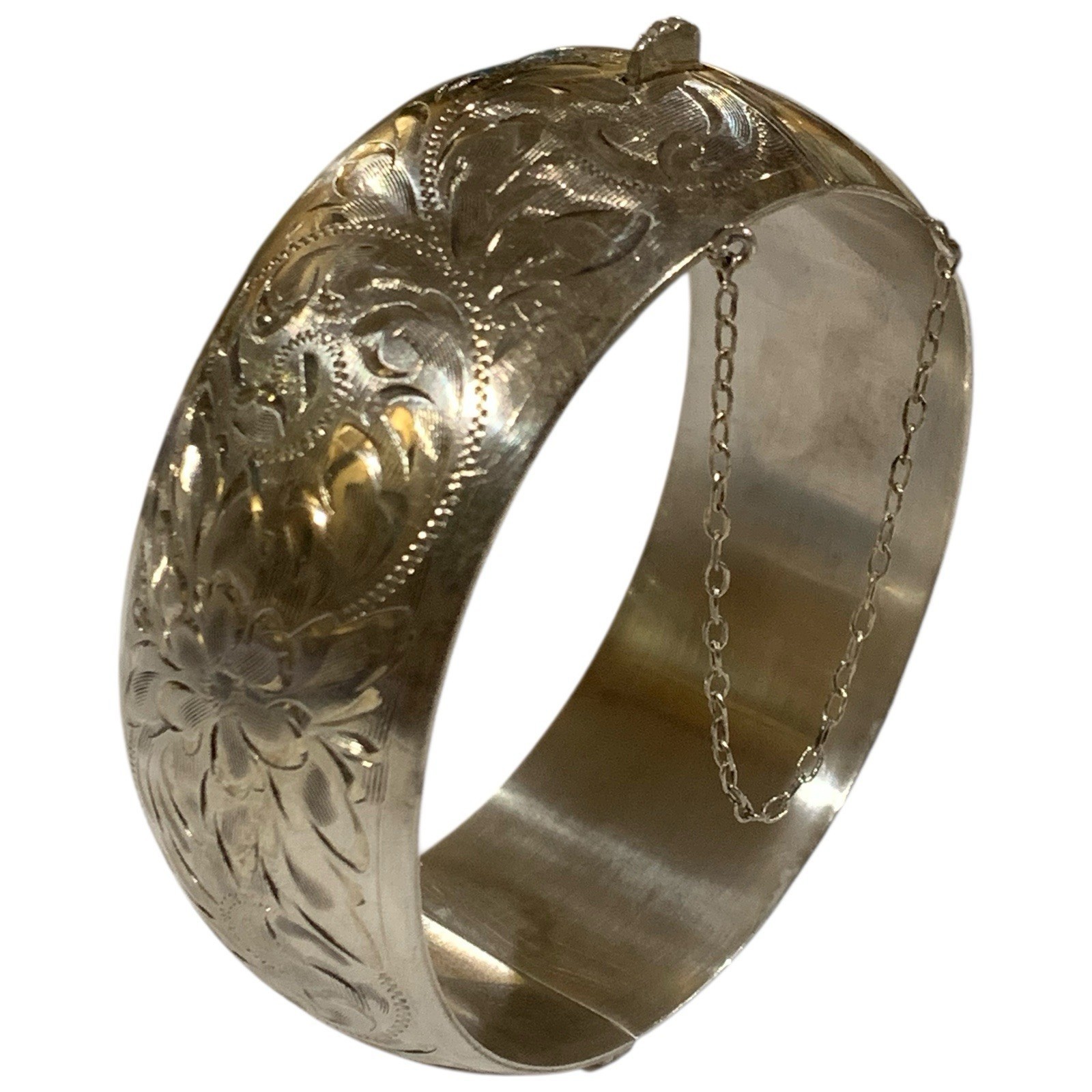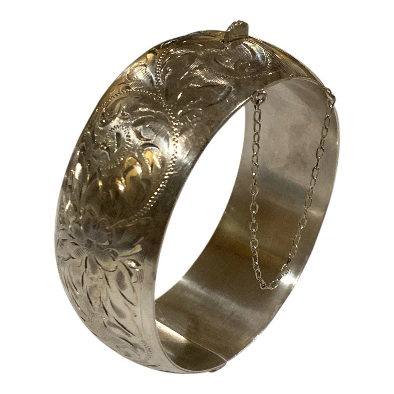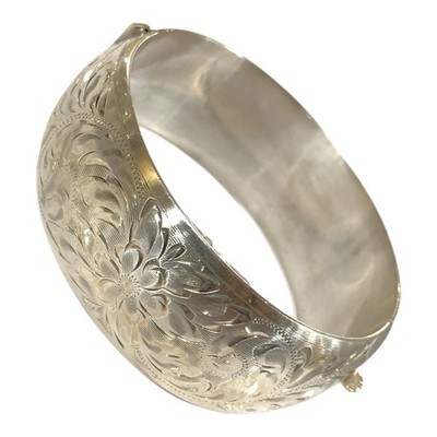 - VINTAGE STERLING Silver ETCHED HINGED BANGLE Check Last Pictures