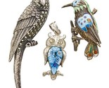 STERLING SILVER GLASS ENAMEL THREE (3) BIRD BROOCHES - PARROT, OWL, HUMMING BIRD (?), METAL: Sterling Silver 1ST ITEM MEASUREMENTS: 1 1/2" L x 5/8" W. 1ST ITEM FEATURES: Silver mesh Brooch/ Pendant Bird, decorated with filigree and colorful enamel. 2nd ITEM MEASUREMENTS:2 1/2" L x 5/8" W. 2nd ITEM FEATURES: A Parrot Brooch decorated with Marcasite stones. 3RD ITEM MEASUREMENTS:1 3/4" L x 3/4" H. 3RD ITEM FEATURES: turquoise and light Millefiori Murano Glass Owl Pendant 9 % SALES TAX WILL BE ADDED on multiple purchases. would not be combined. We appreciate your understanding. INSURANCE DELIVERY CONFIRMATION OR SIGNATURE CONFIRMATION Please call us with any Inquiries: Continental Coin and Jewelry Company Web Department: Monday to Friday, from 10:30 am - 6 pm (818-781-4232) Refer
