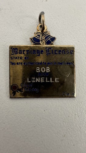 - Vintage Sterling Silver Marriage License Charm “Bob & Lenelle”