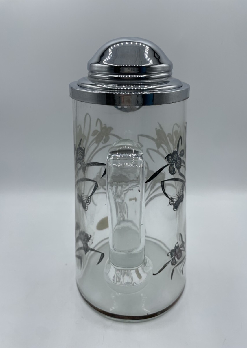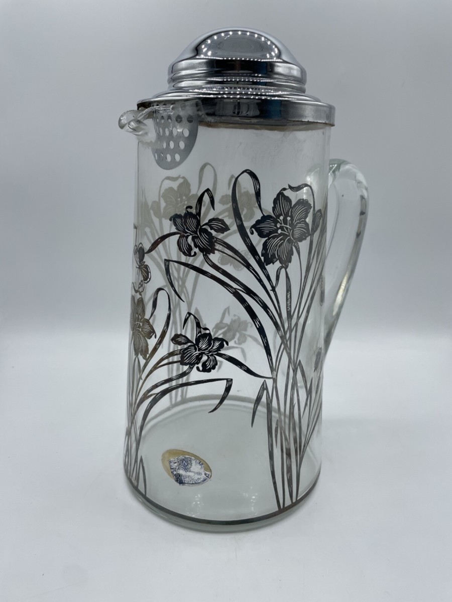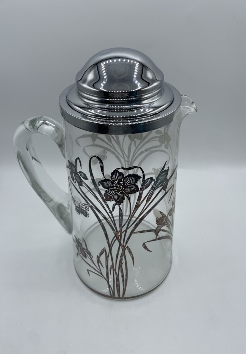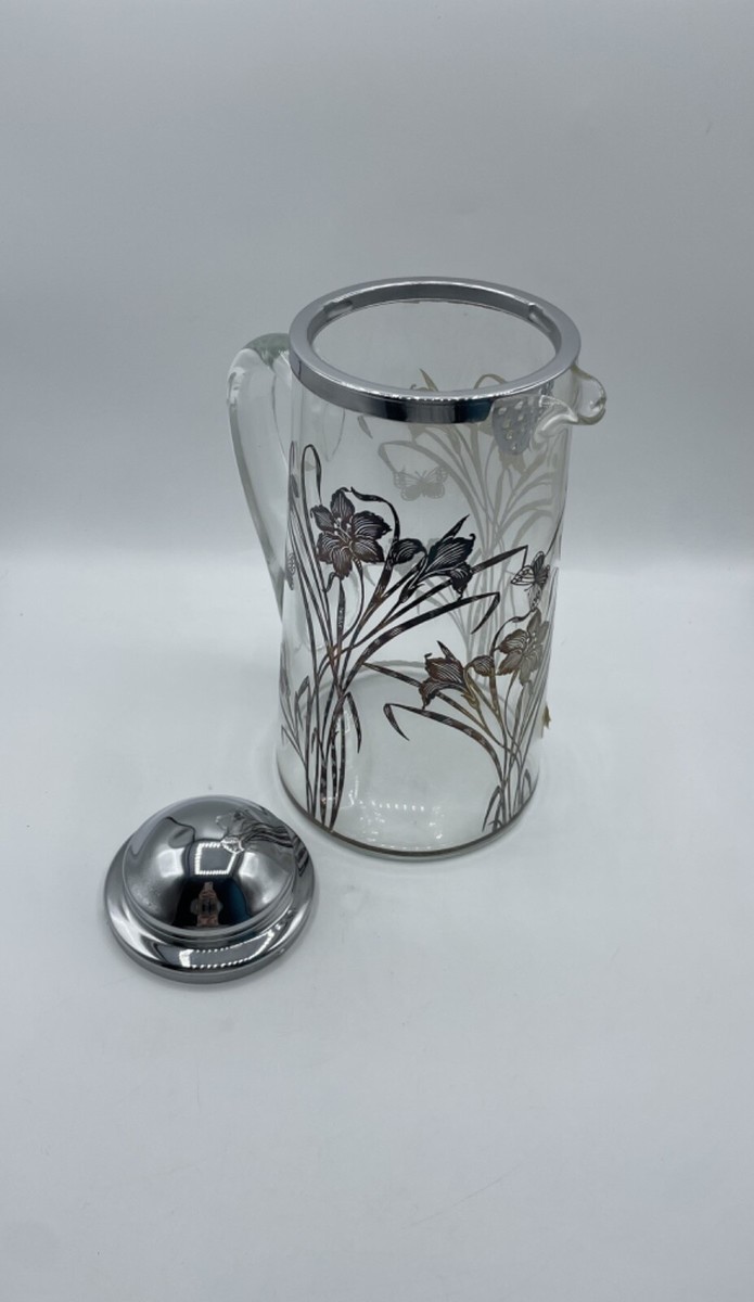 - Vintage Sterling Silver Overlay Glass Pitcher Flowers Floral Bs310