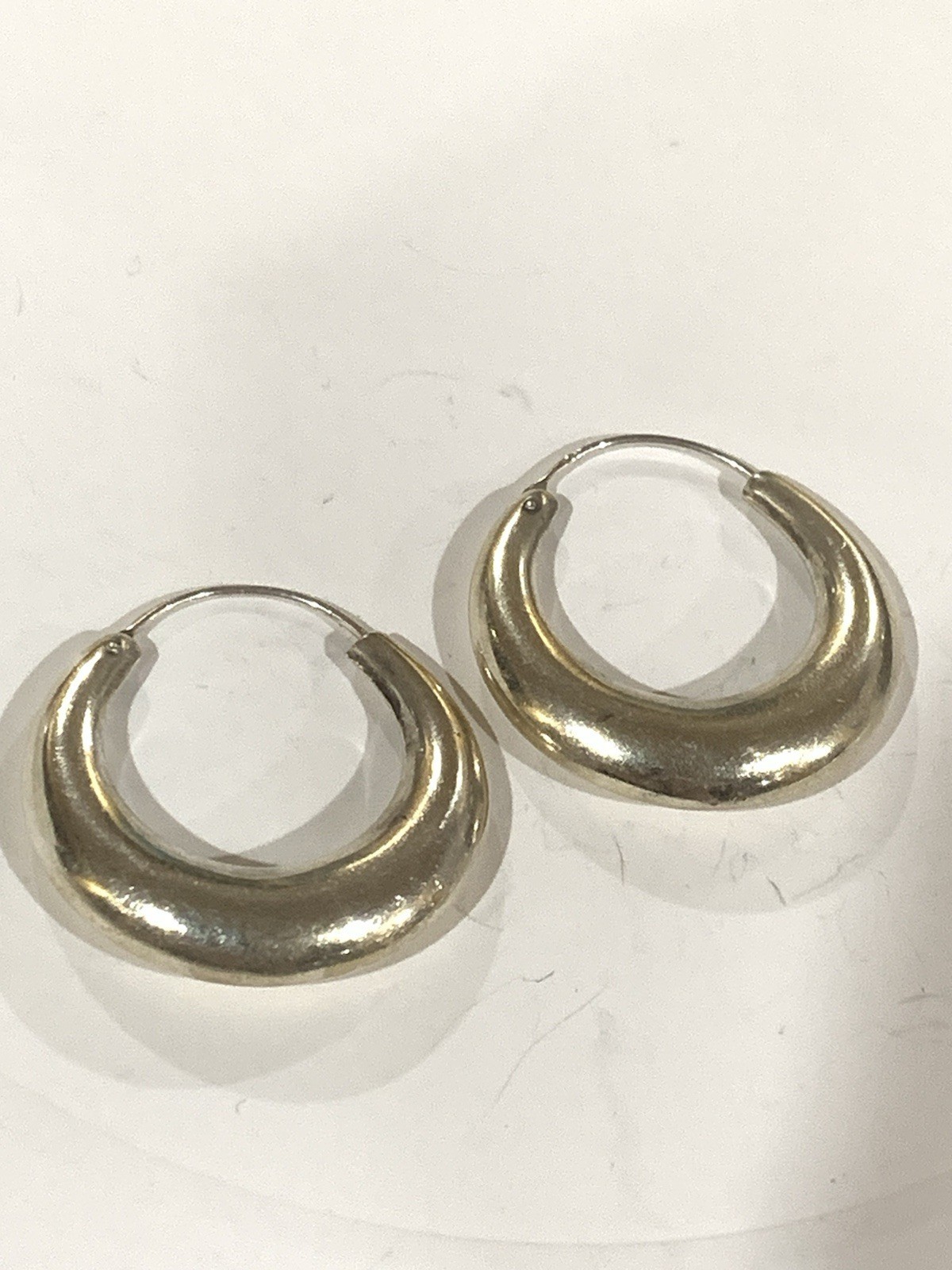 - Vintage Sterling Silver Wide Hoops Earrings Stamped 925