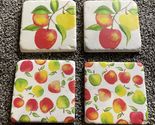 - Vintage Stone Tile Cork Back Coasters Apple Theme 3.75”
