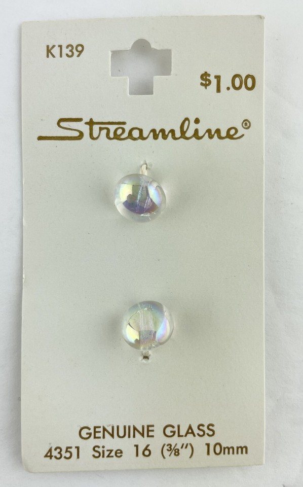 - Vintage Streamline Buttons Genuine Glass Size 16 3/8ths 10mm West Germany