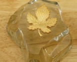 - Vintage Studio Art Clear Glass PAPERWEIGHT Gold Tone Metal Maple Leaf Accent