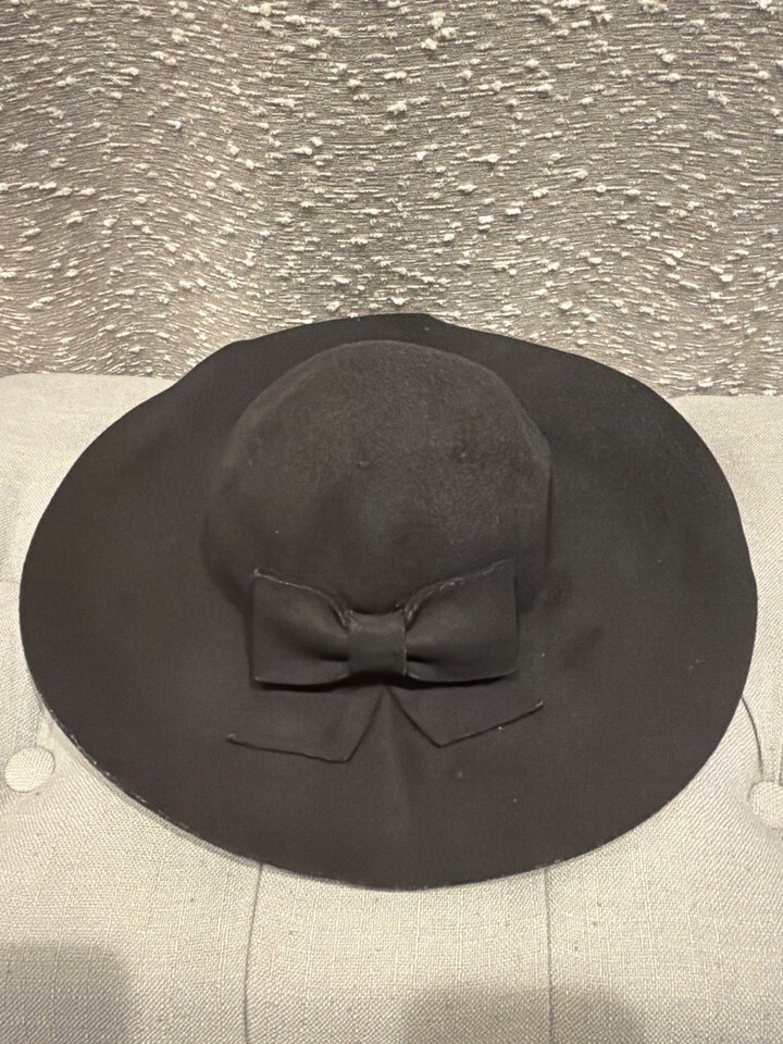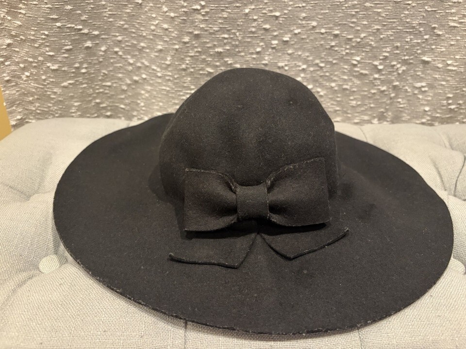 - Vintage-Style Black Cloche Hat by August - 100%Wool with Bow Detail